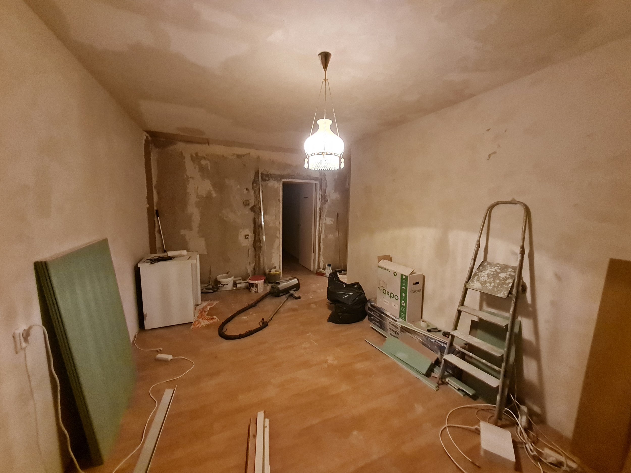 Korda on vaja teha seinad ja laed. Elutoas on tapeet eemaldatud ja alustatud ka pahteldamisega. Magamistubades tuleks tapeet eemaldada, seinad ja laed pahteldada ja värvida.