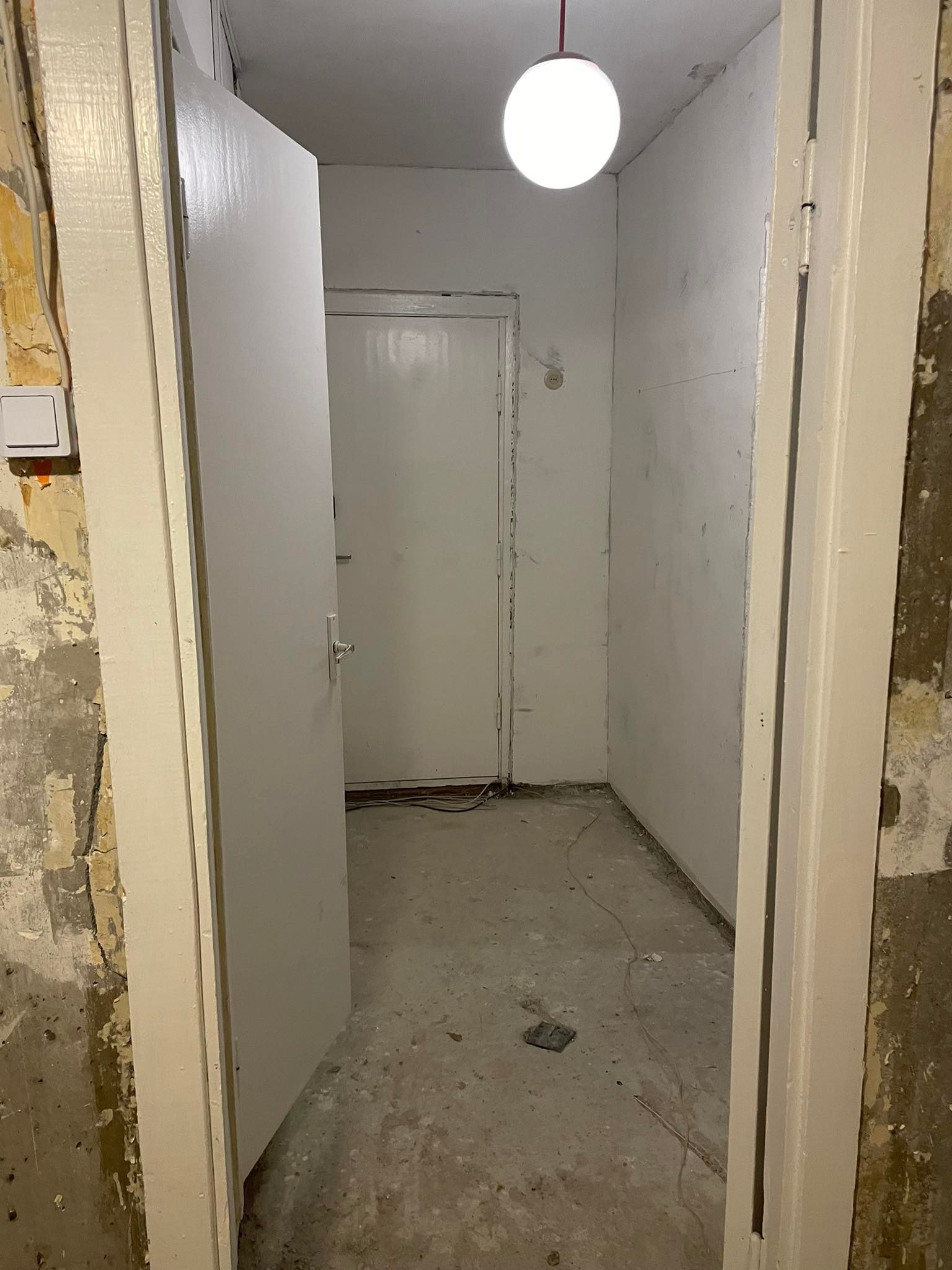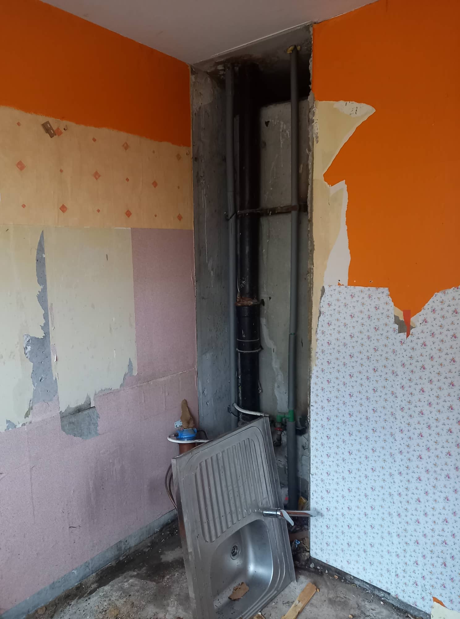 2. WC/vannitoa remont. Vana santehnika eemaldus. Plaatide eemaldus seinalt ja põrandalt. Vanade torude eemalus. Uute torude paigaldus. Seinte ja lagede värvimine niiskuskindla värviga. Paigaldada dušinurk koos madala vanniga, wc pott ja valamu. Paigaldada rätikukuivati, kust soe vesi liigub läbi. Ilmselt vaja ühte seina teha kipssein, et katta uued torud. Põranda plaatimine. Seinas plaatida ainult see osa, kus dušinurk. Panipaiga põranda eemaldus(plaaditud). Köögis vaja kipsiga katta püstak ja veetorud.