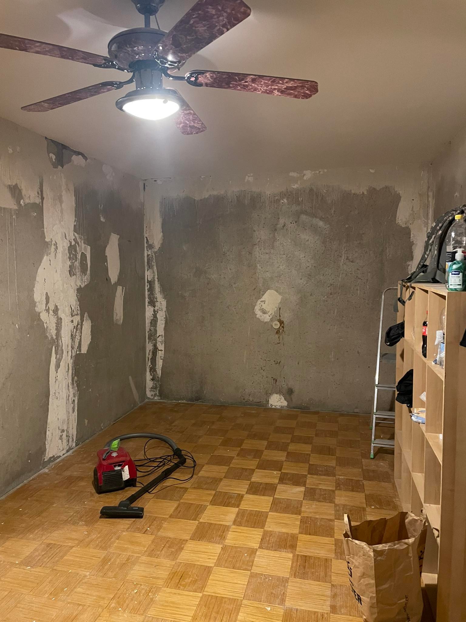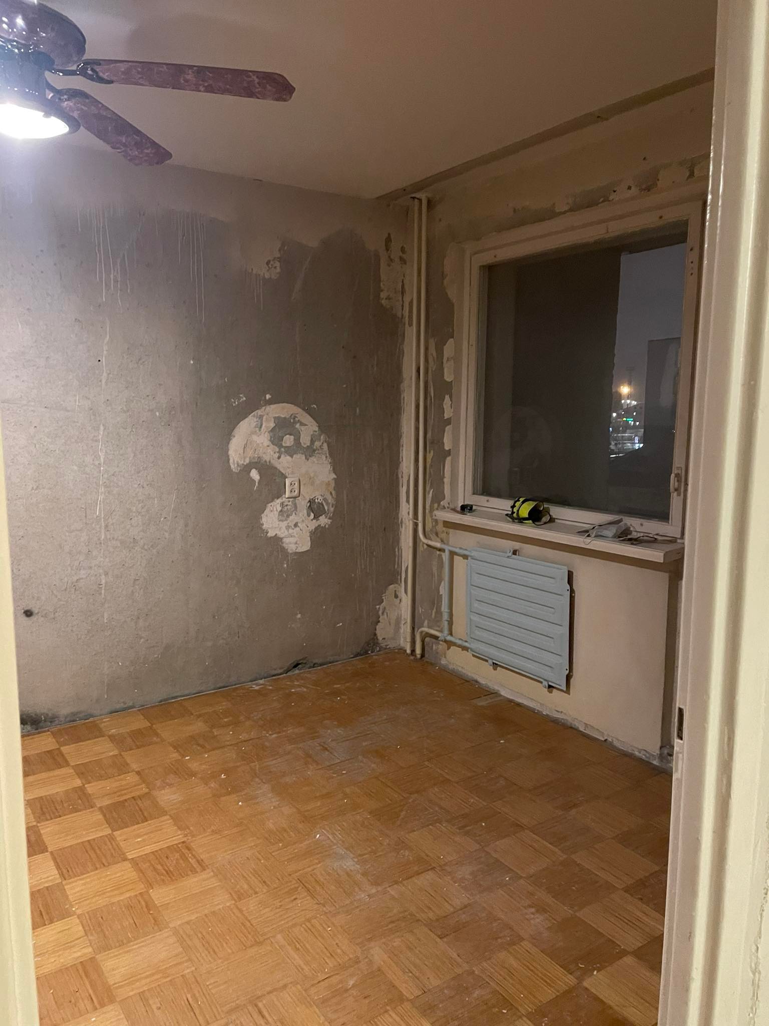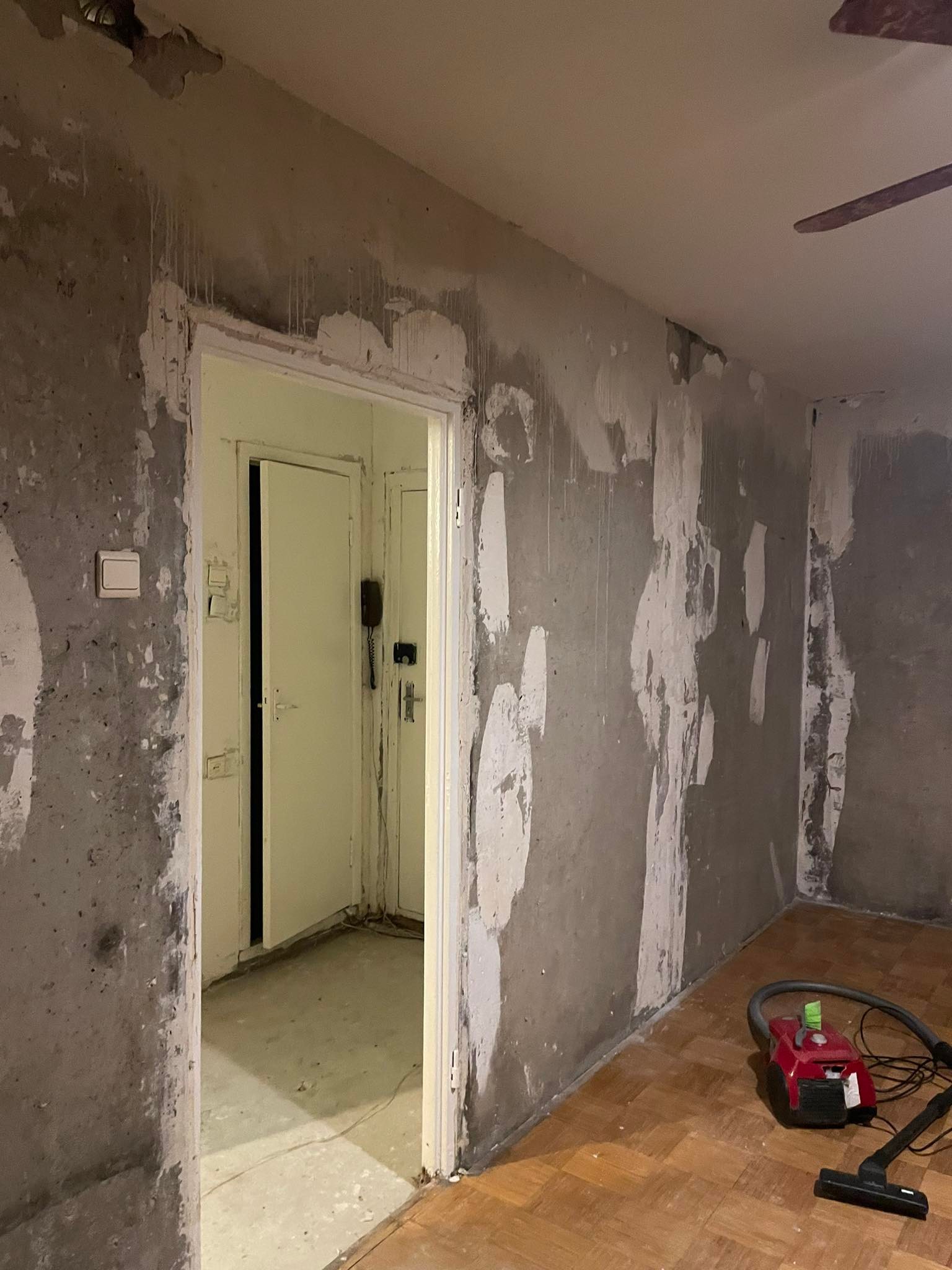 3. Lagede ja seinte viimistlus kogu korteris. Krohv ja värv. Seina freesitud elektrijuhtmete ja vanade pistikuepsade aukude katmine krohviga.