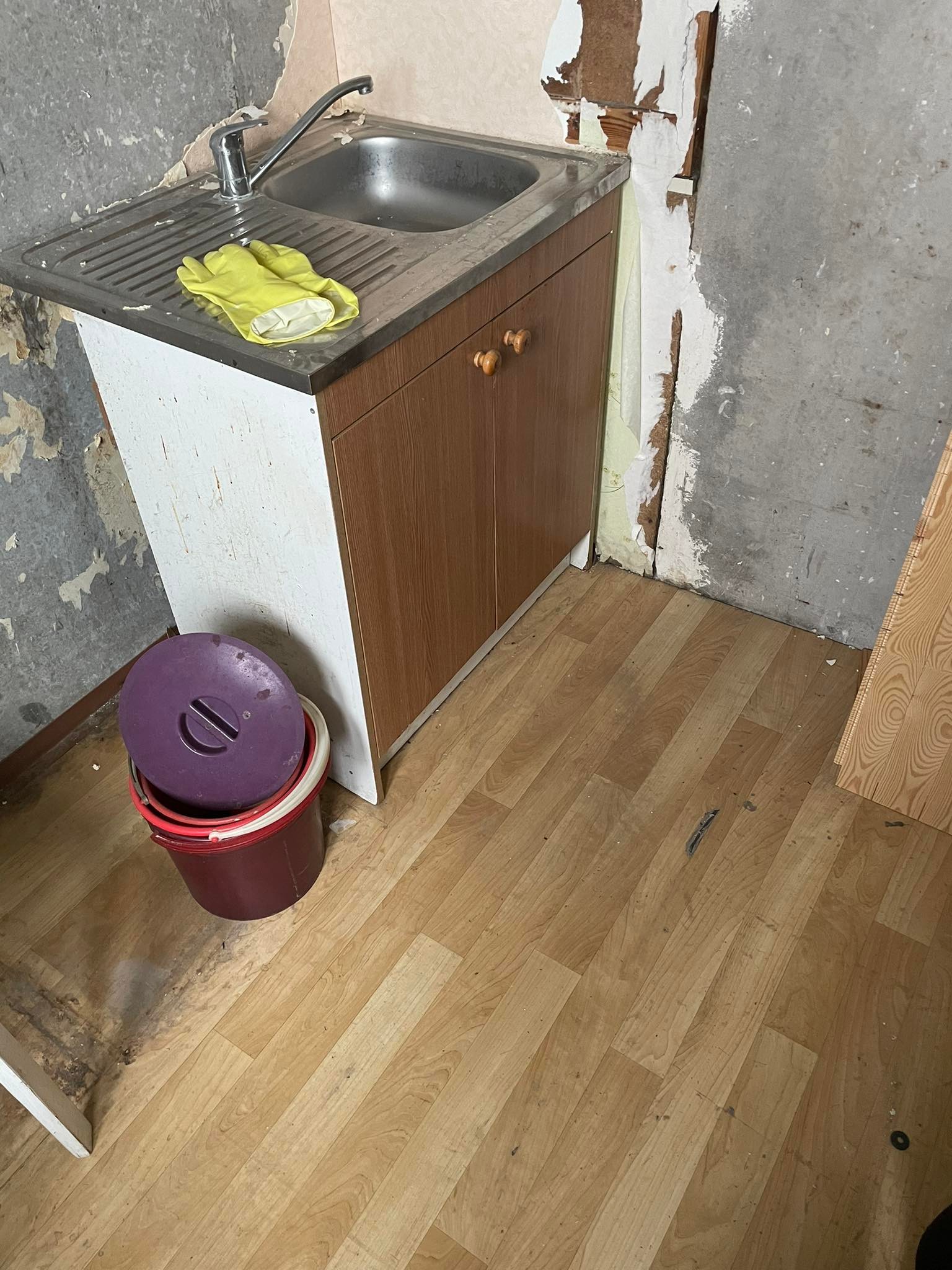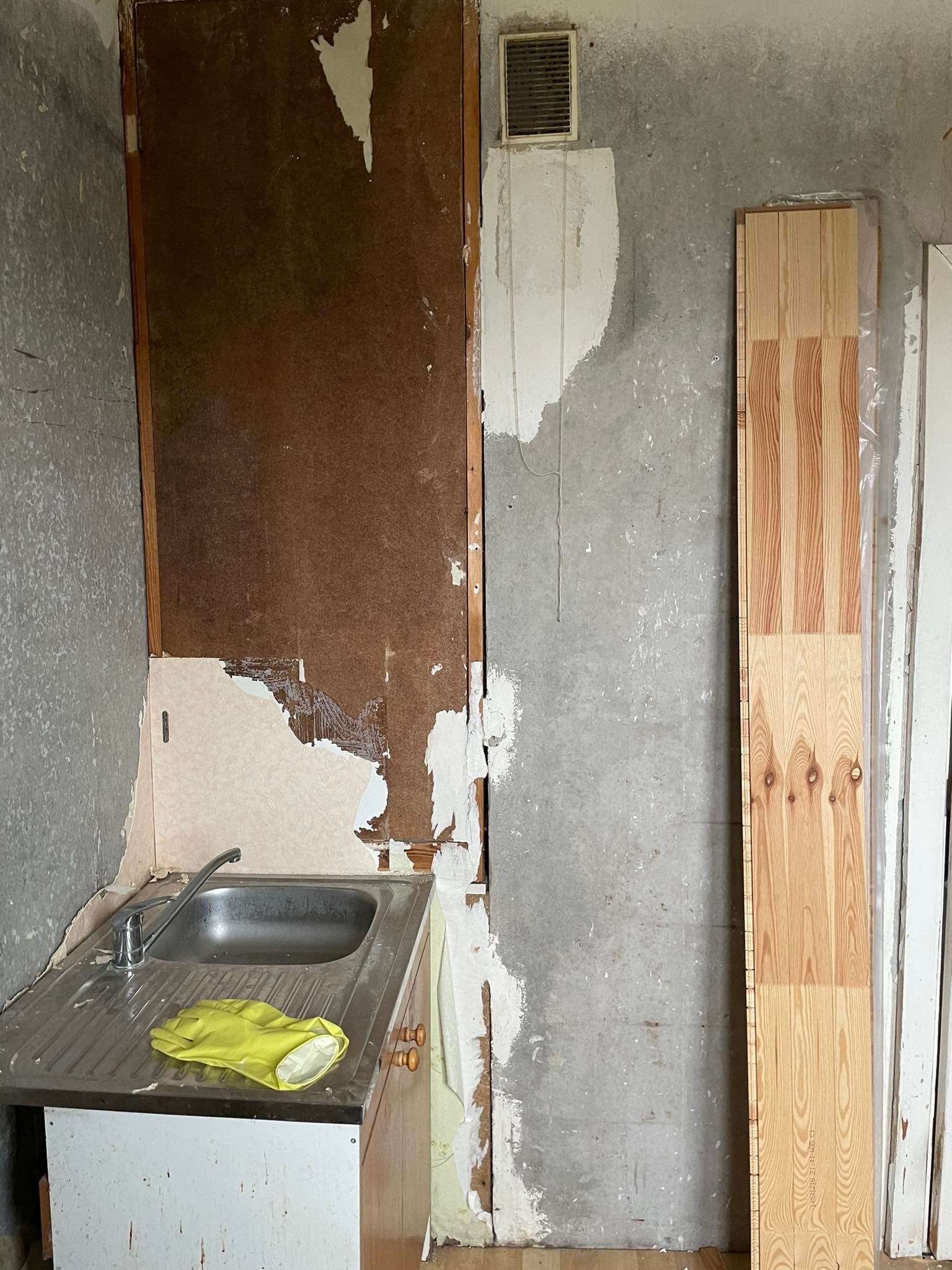- Köögis seinte töötlemine ja värvimine. Põrandakatte eemaldamine ja uue parketi paigaldus koos alusplaadi ja liistudega. Vana valamu + valamukapi eemaldamine.