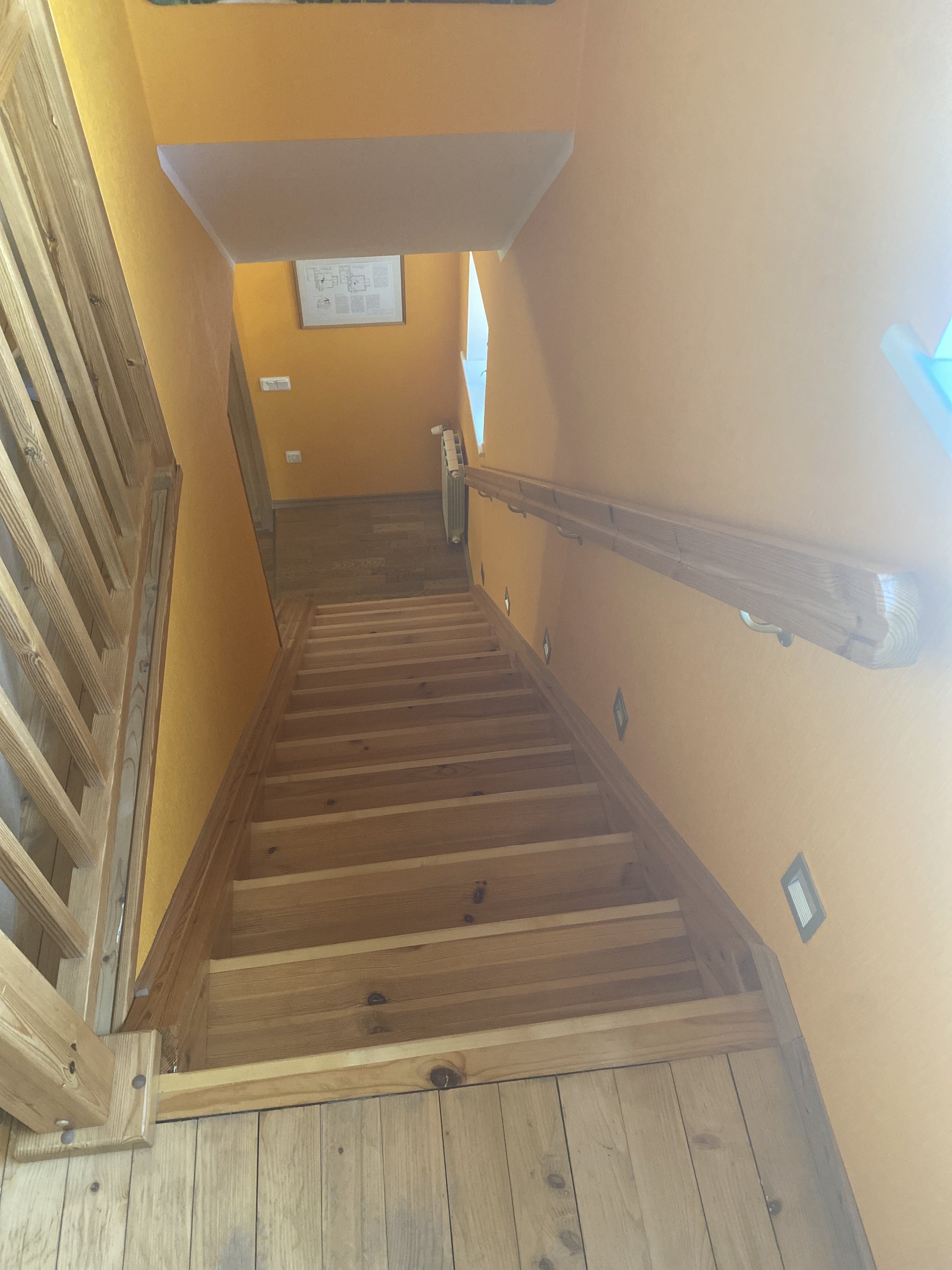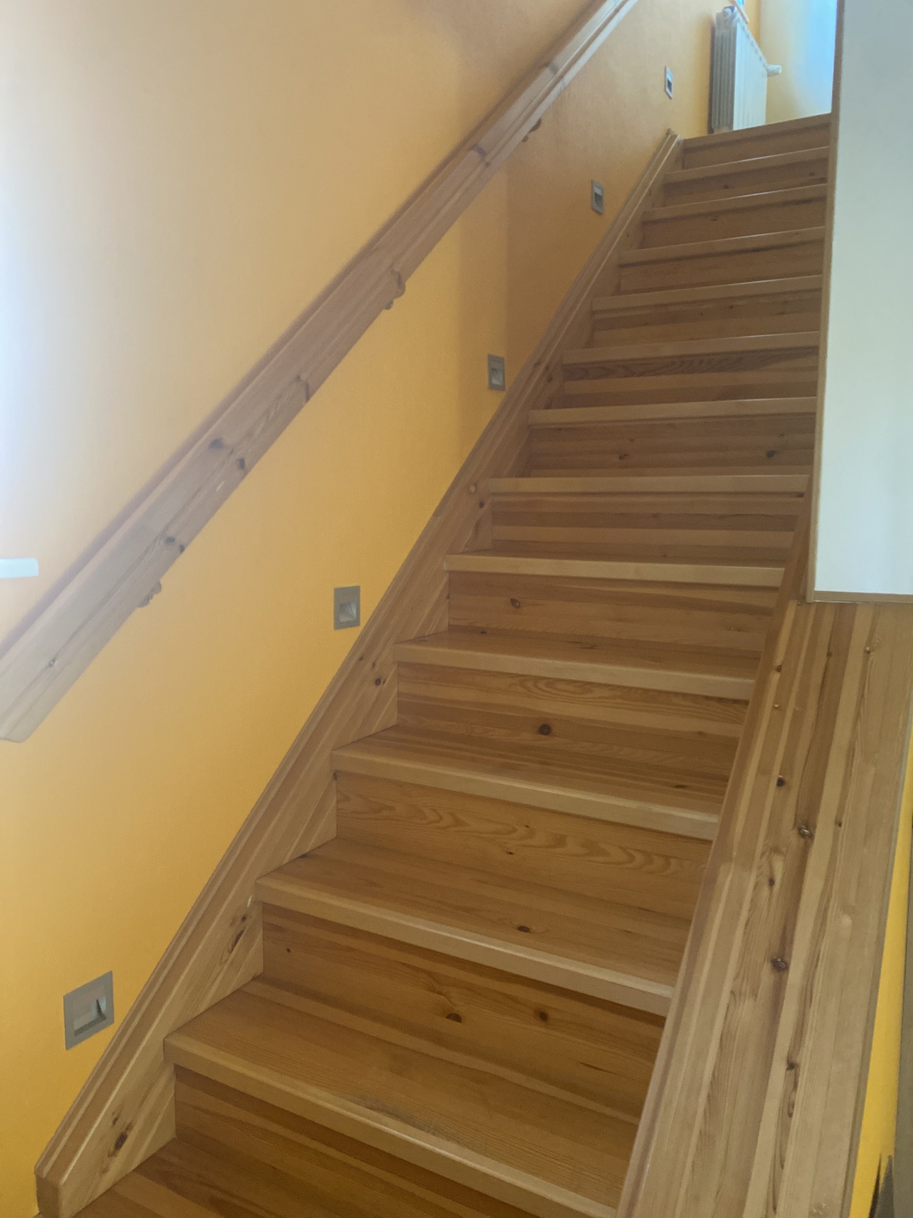 Trepp krigiseb ja kriuksub kui peale astuda, palume töövõtjal trepi aluskonstruktsiooni parandada nii et saaks vaikselt üles alla kõndida. Trepil on kokku 15 astet. Trepp on 900mm lai. Trepi välimust võib vajadusel muuta kuigi oleme välimusega rahul ja eelistame et see ei muutuks. Ajaliselt pole kiiret, peaasi et trepp korda saab.