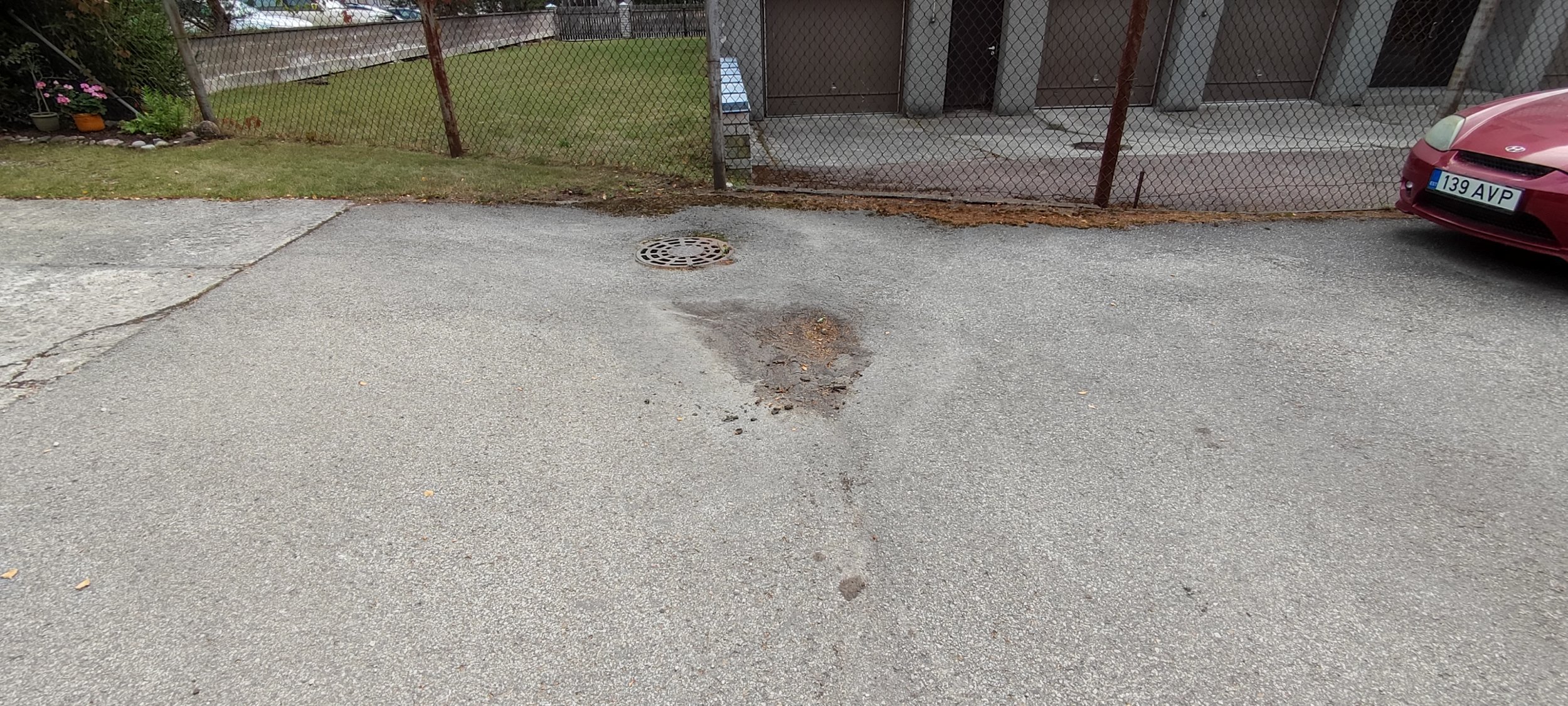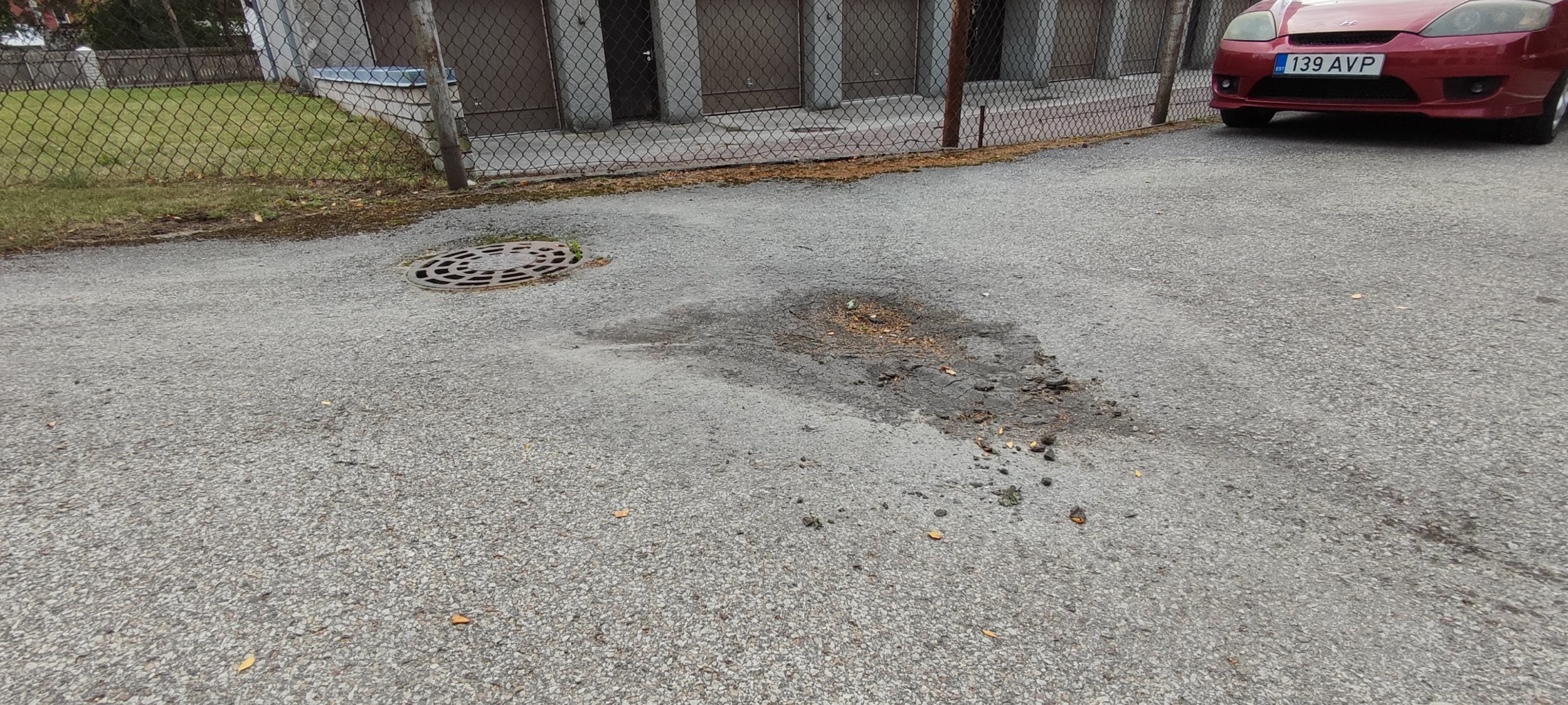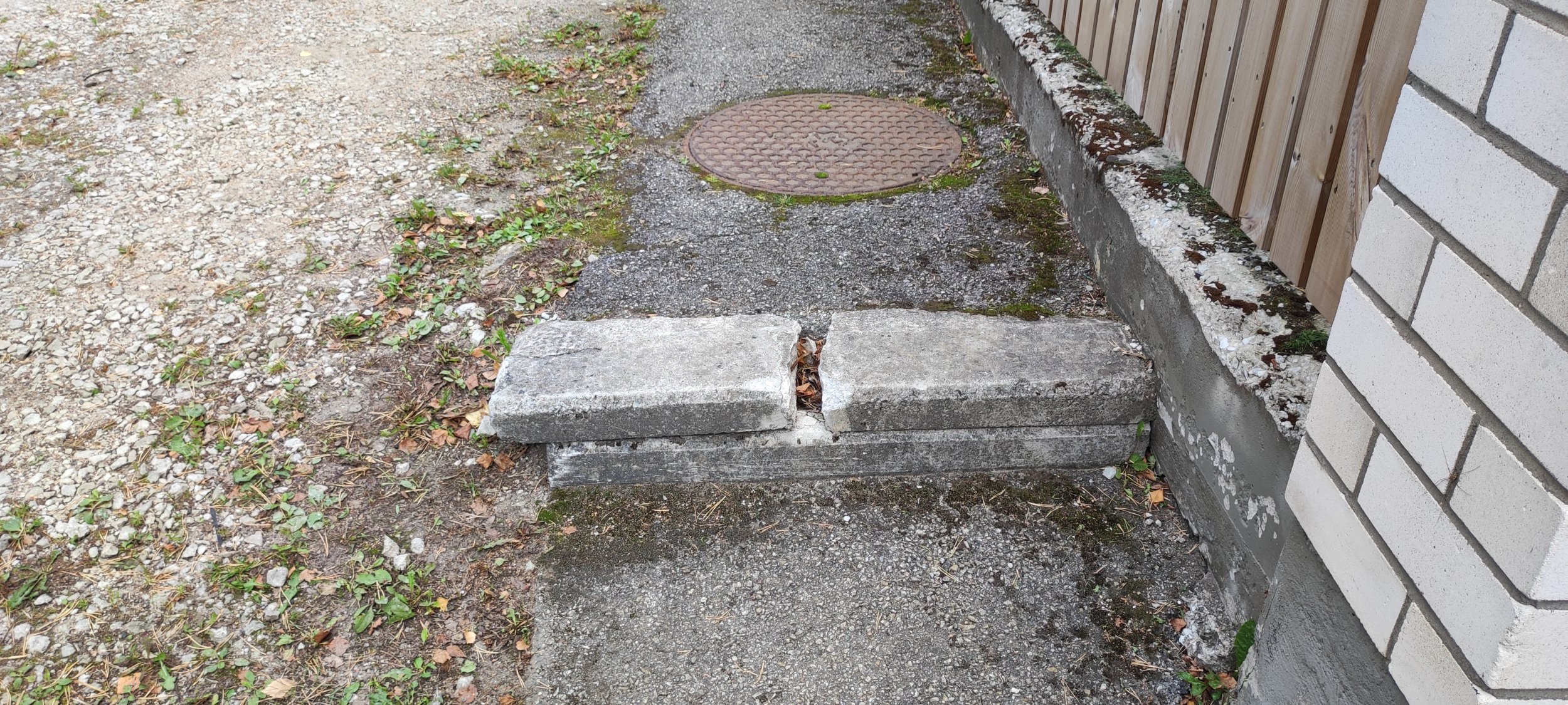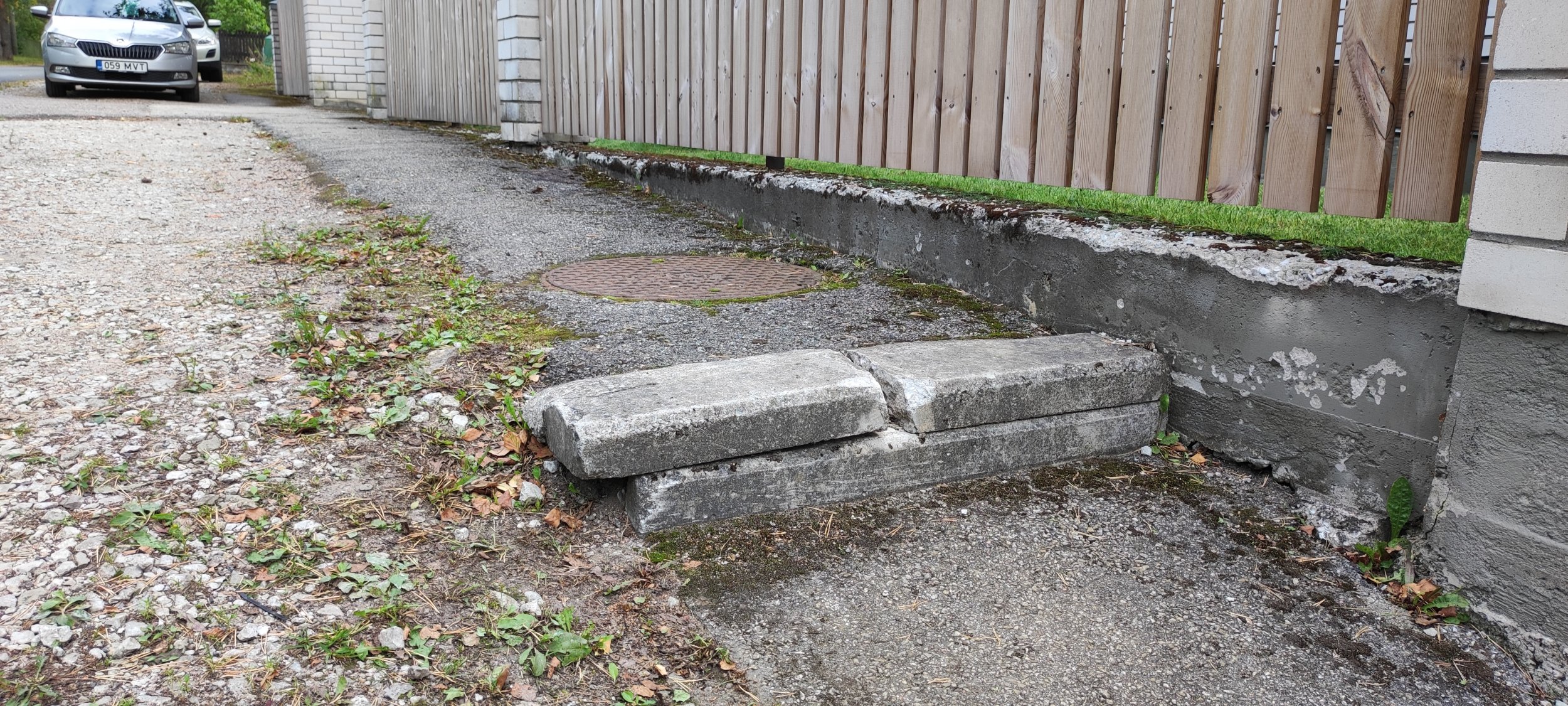 Vaja vahetada välja katki läinud äärekivi, elimineerida vajunud auk parklas.