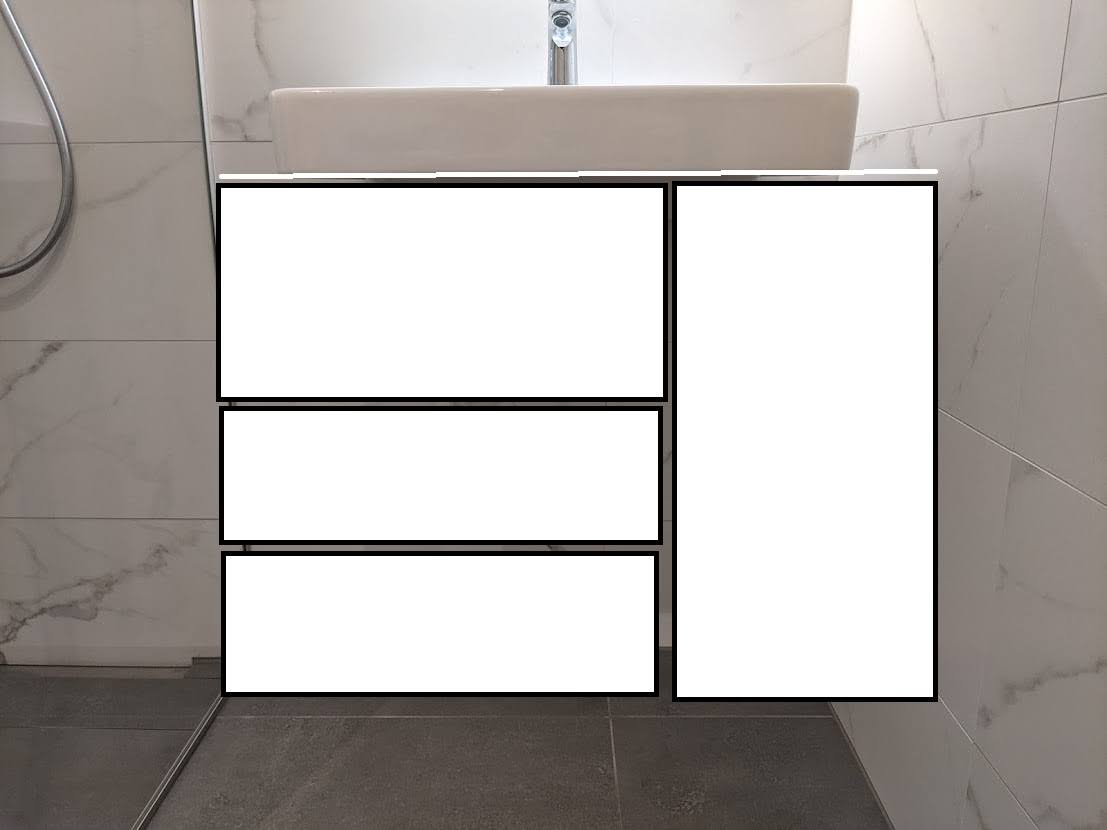 Sooviks eritellimusel vannitoa valamukappi olemasolevale valamule. Kapil võiks olla vertikaalselt kolm sahtlit ja ühele poole võiks jääda ühe kapiuksega osa. Välise disaini poolest võiks olla võimalikult lihtne, üleni valget värvi (matt) ja ilma käepidemeteta. Võiks kasutada ära maksimaalselt laiust ja kõrgust.