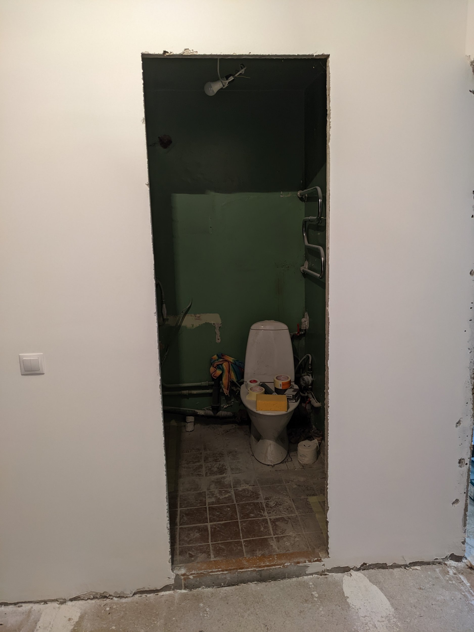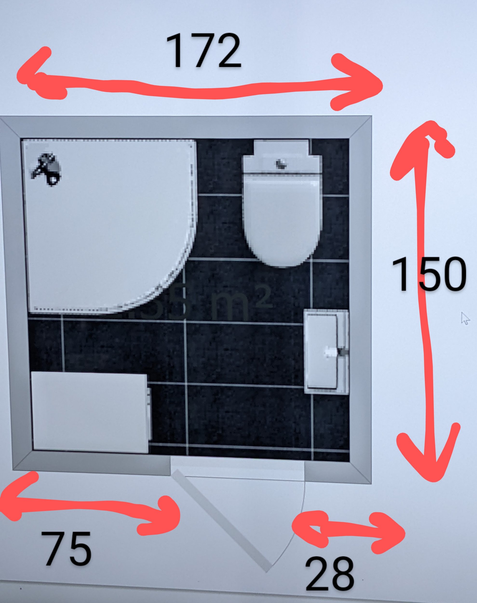Materjalidest on enda poolt plaadid, wcpott, dušikabiin, valamu segistiga ja valgusti.