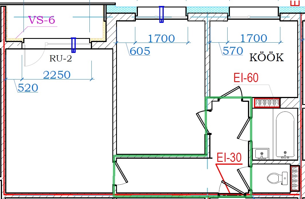 Tartu KEK-i tüüpprojekt 111-133 5-korruselise paneelmaja 2-toalise korteri remonttööd (II korrusel):