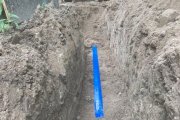 Kinnistu ja tänava vahele jääva sadeveekraavi asendamine 300 mm drenaažitoruga, katmine killustikuga ja muldvalli taastamine. Töö sisaldab ka vana heki kändude väljakaevamist ja ühe suurema puu kännu eemaldamist. Kraavi pikkus 25 m, sügavus ca 0,7 m ja laius ca 1 m.