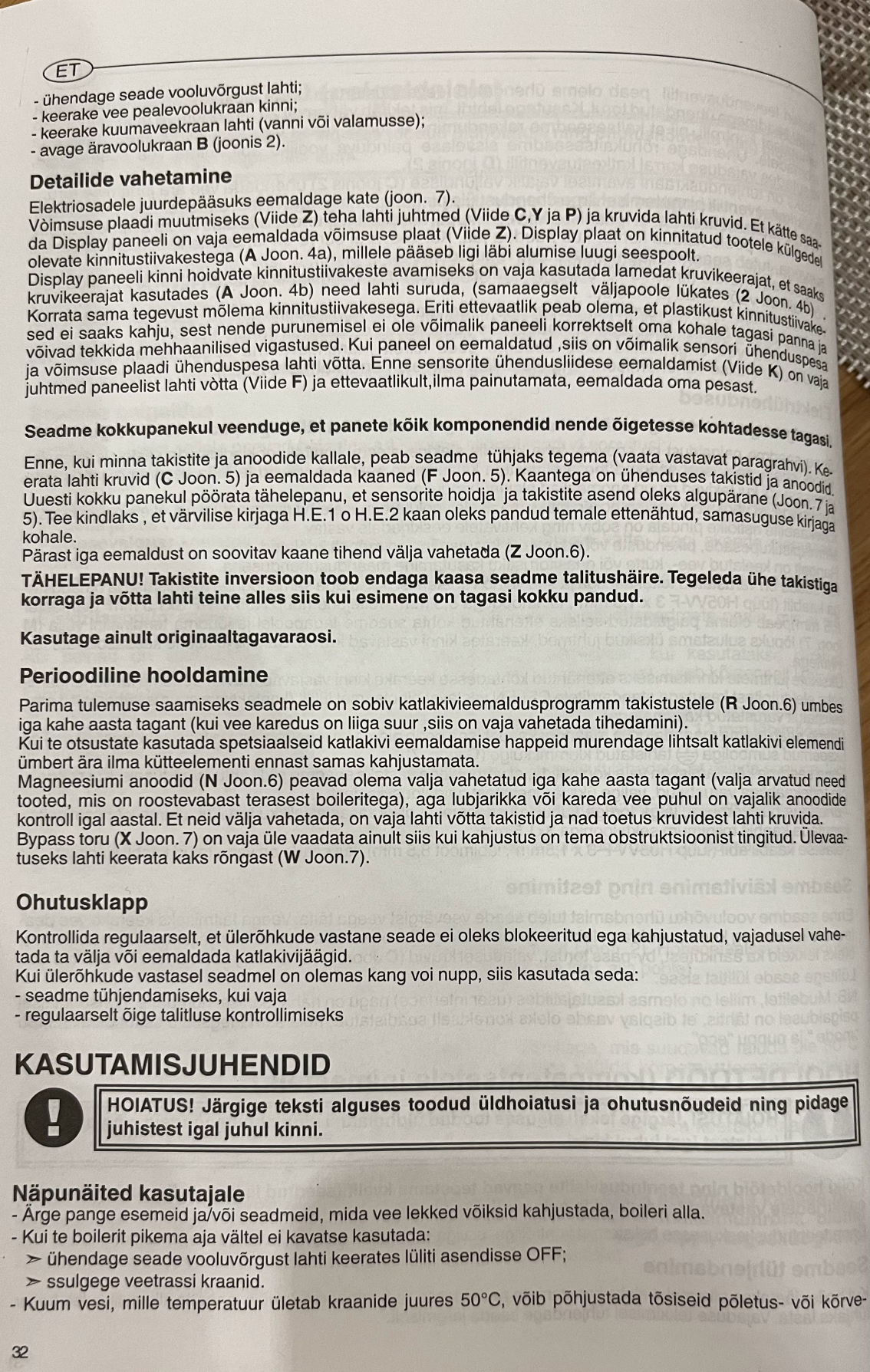Eesmärk on teha kõik vajalikud tegevused, et boiler jälle töökorda saaks. Ilmselt on vaja mingeid juppe ka osta, et saaks olemasolevad välja vahetada.