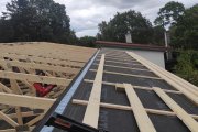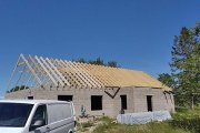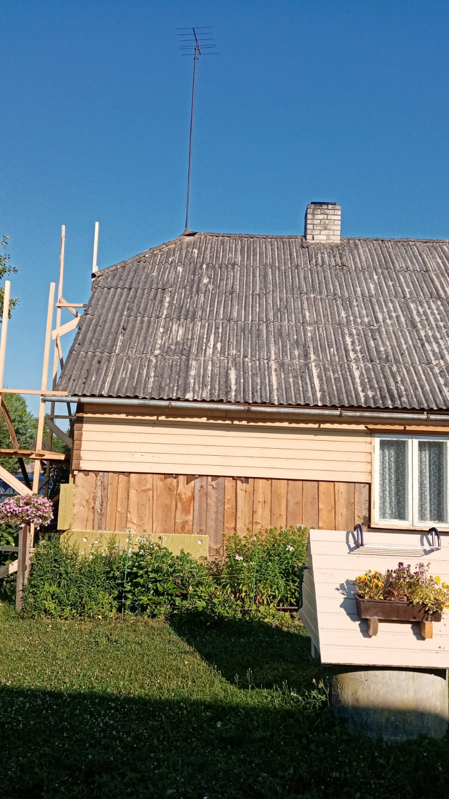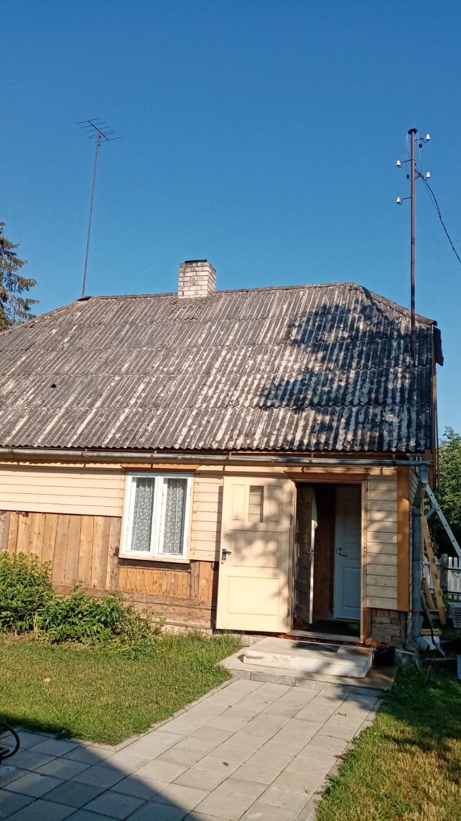 Eterniitkatuse vahetus. Katus 100 rm. Vaja maha võtta vana eterniit ja see asendada uuega, vana utiliseerida. Kôik on vaja uueks: sarikad ja roovid, müürilatid. Katusel 1 korsten. Plaanis kasutada katusel Gootika-eterniiti.