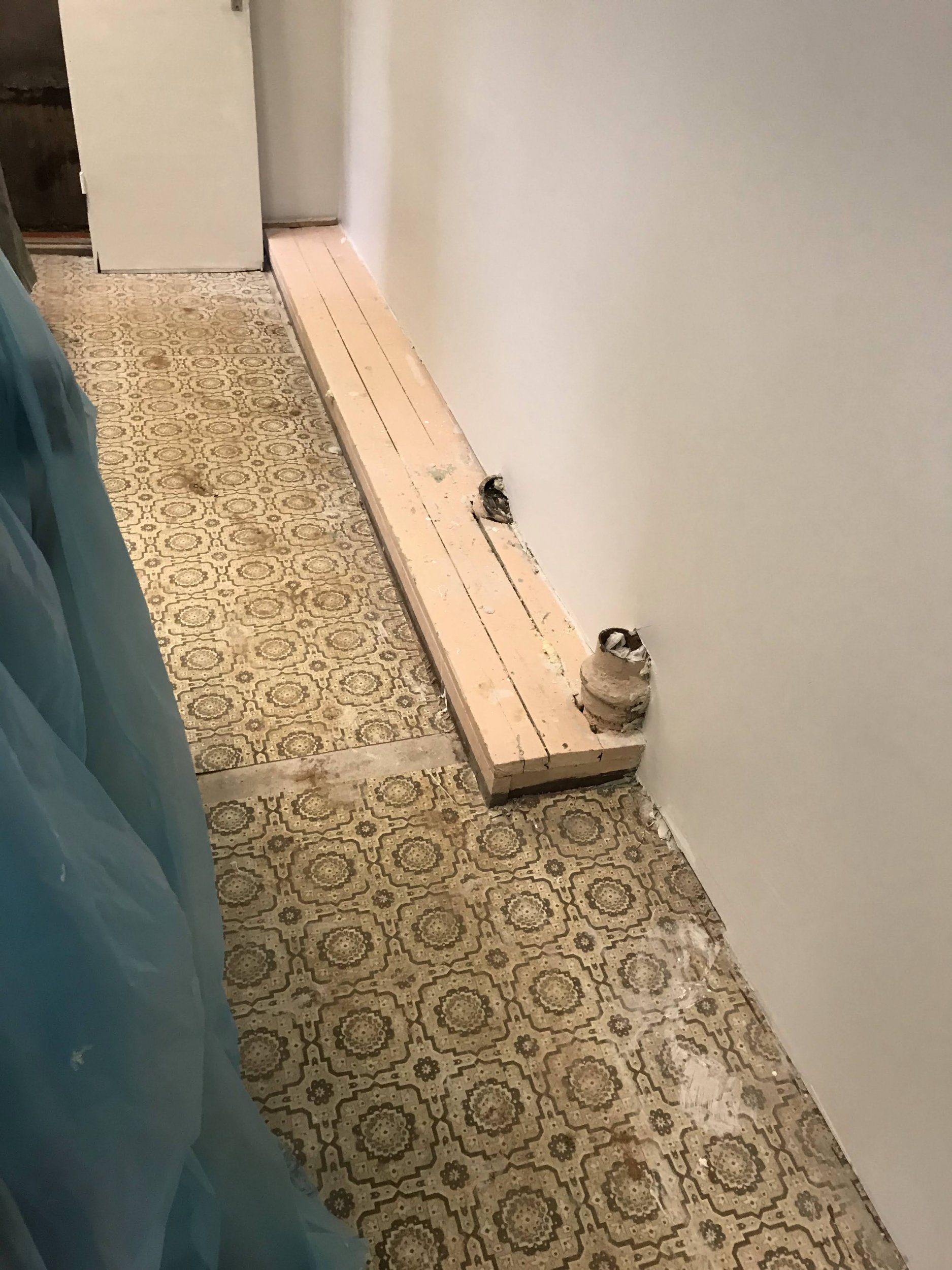 2. Pool ruumi (B-osa) on linoleumkattega betoonpõrandaga, milles on torukanali avad, mis on vaja täita vastavalt mahutabelile, vajadusel tuleb betoonile valada tasandussegu.