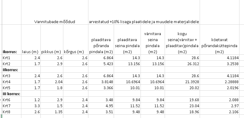 | Ehitusmaterjalid: | Töö tellija poolt |