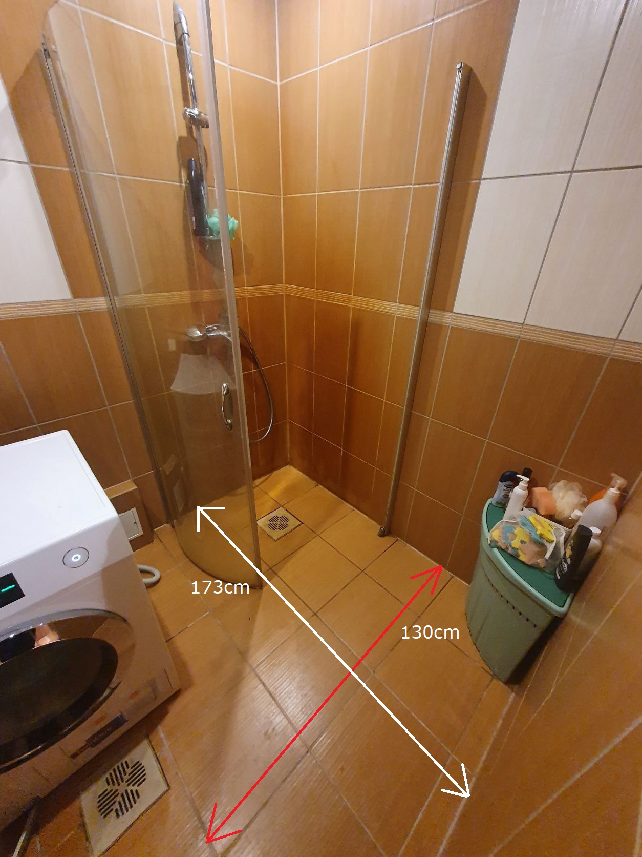 Probleem on nimelt selles, et pärast duši all pesemist parempoolses nurgas, dušinurga vastas, põrand "lirtsub". Paistab, et vesi tungib põrandaplaatide alla. Peale plaatide ja seinte eemaldamist täpsustub, kas vesi läheb vaid plaatide alla või ka põranda alla. Vastavalt sellele võib töömaht suureneda.