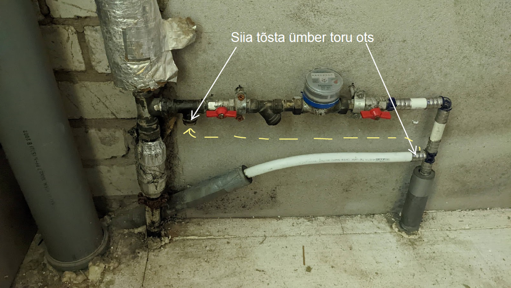 2. Ümber tõsta toru ots olemasolevas veesõlmes eksisteerivasse hargnemisse (seletus pildil).