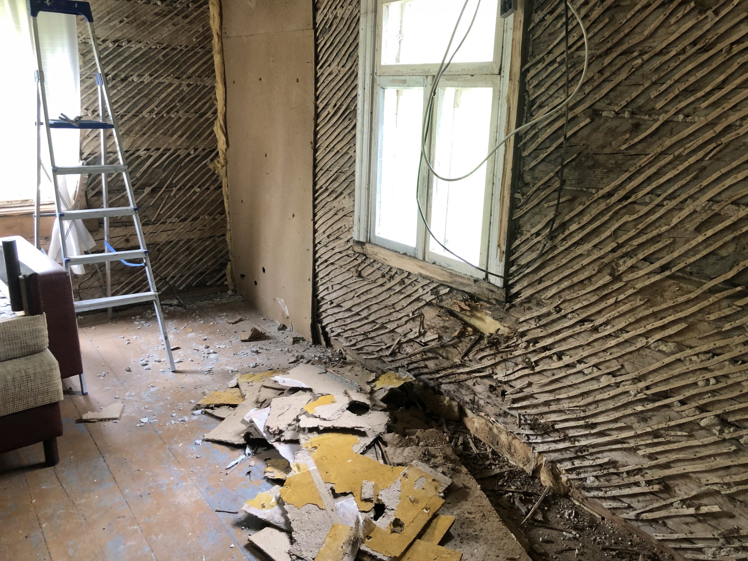 Vaja oleks puhastada majal siseeseinad. Maha on võetud lubikrohv ja krohvimatid aga palgid oleks vaja puhastada.