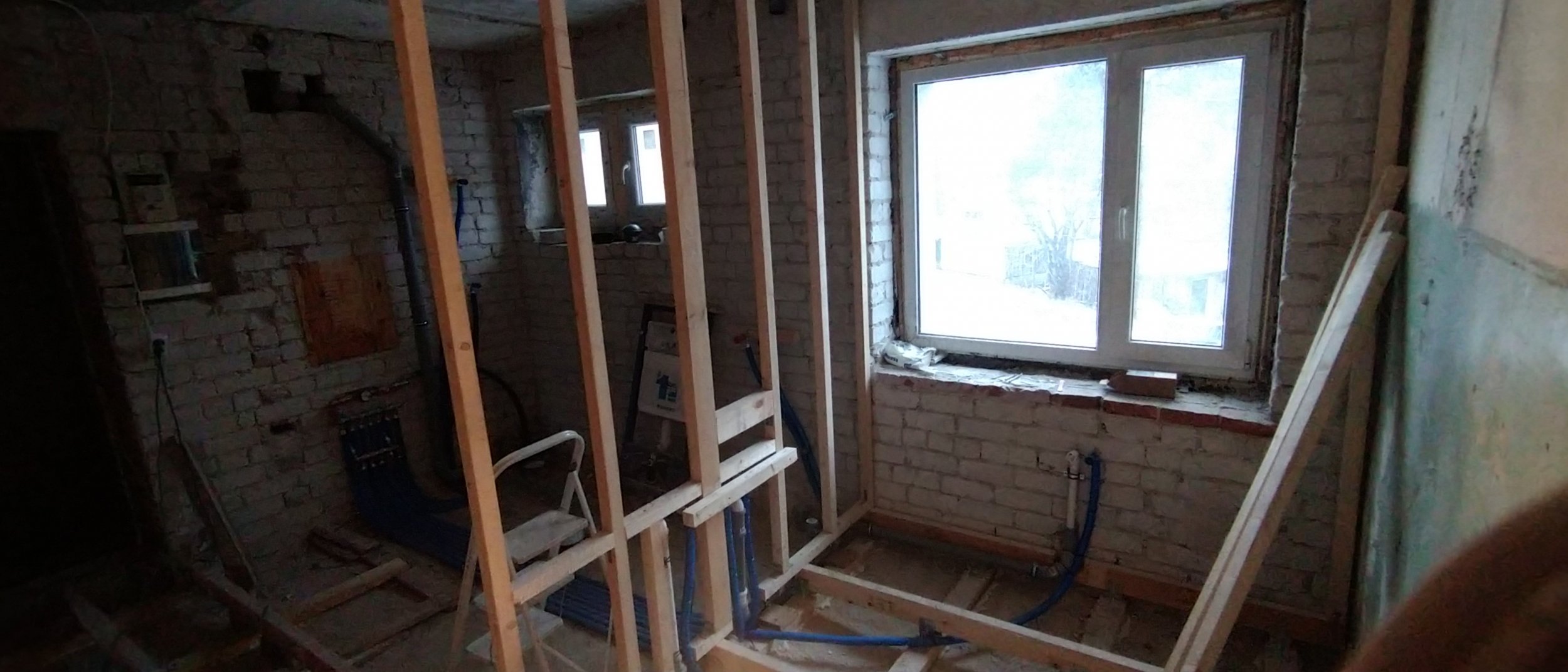 Etapp 4. Vannitoa tehnoruumi karkass ja aknaseina karkass