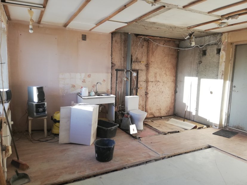 *Ehitada uus põrand, soojustada ning paigaldada põrandaküte. Vannituba plaatida.