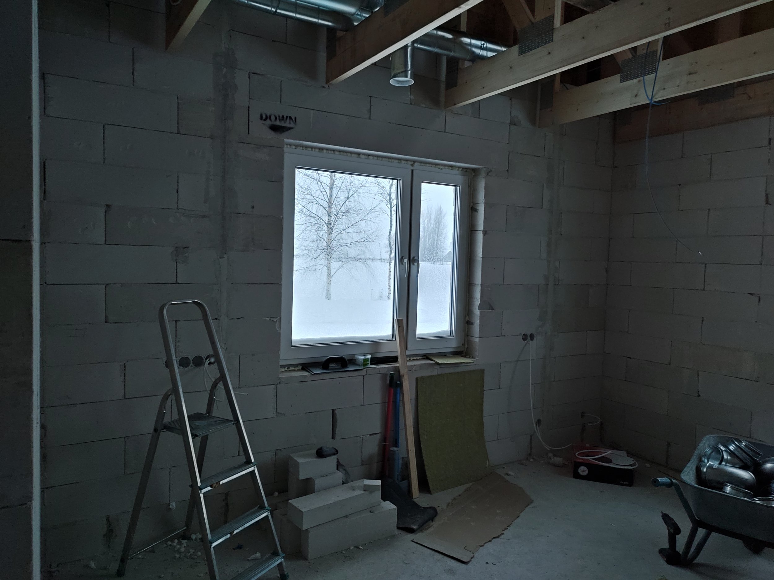 Elamu siseseinte viimistlus, alustades krohvimisest, lõpetades värvimisega. Seinad bauroc plokist. Pinda ca 220.