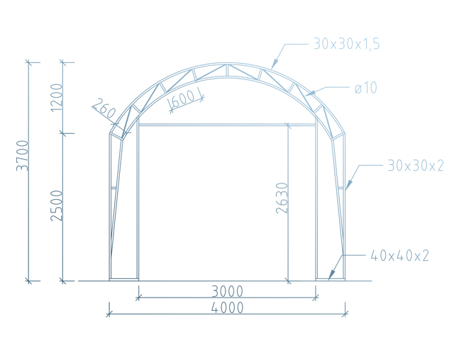 Hall on 8m pikk, 4m lai ja 3.7m kõrge, killustiku padjal.