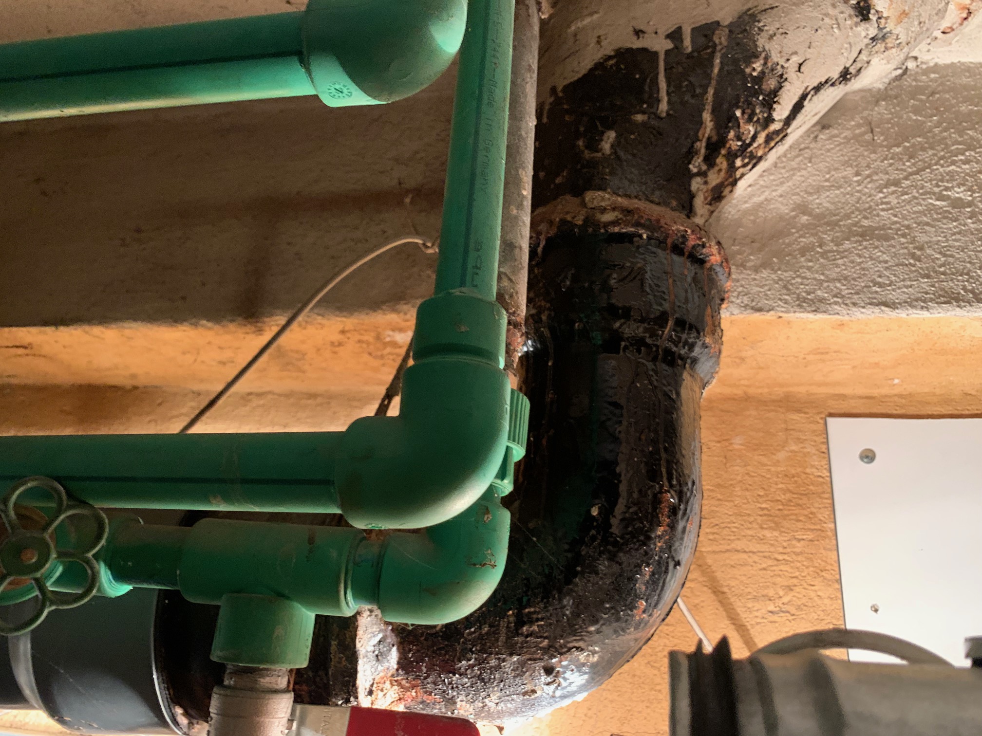 Tallinna kesklinna 2-korruselises (+keldrikorrus) kortermajas lekkib malmist kanalisatsioonipüstak. Esimesel pildil on näha, kuidas vertikaalne kanalisatsioonipüstak pöörab horisontaalseks. Eesmärk on vahetada toru ühenduskohast (põlvest) allapoole kaasaegse plasttoru vastu. Vajadusel võib küprokit tööde tegemiseks lahti lõigata.