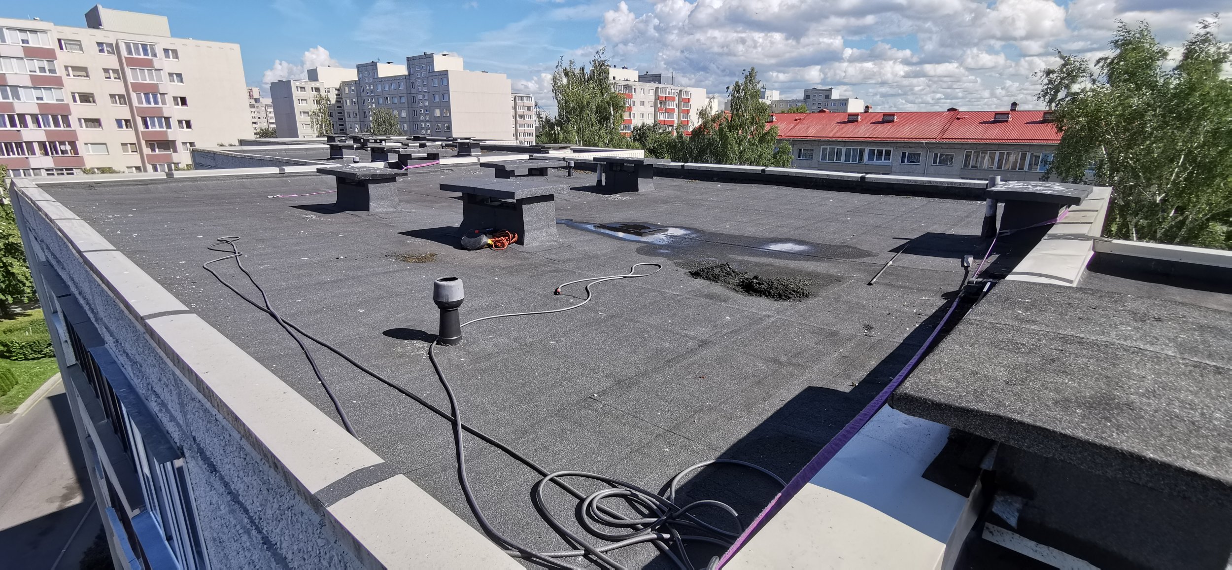 5 kordne paneel maja. Trepikoja 5-ndal korrusel on katuseleke vihma ja lume sulamisel. Lekke asukoht on veeäravoolutoru juures. Tööd tuleks alustada esimesel võimalusel.