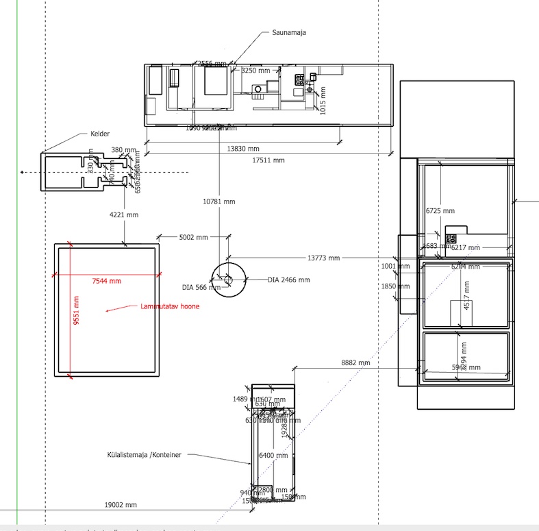 (muld ). Raskendavateks asjaoludeks kuusk maja ees (plaanis säilitada) ja teiselpool maja naabri kuur, orienteeruvalt 5m majast. Vundament jääb paika.