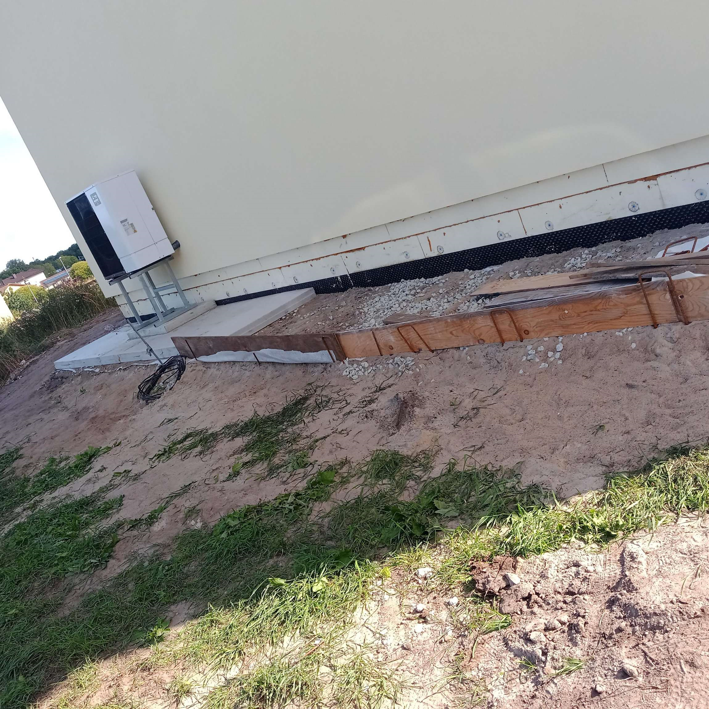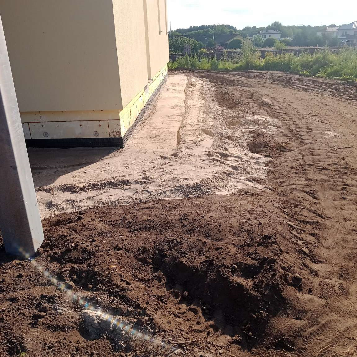 Tänavakivide paigaldus. Lao maja ümber kivid, soojustuse ( XPS CARBON PROF 300 100MM 580X1180MM ) peale. Nüüd tihendatud liiv ja killustik + soojustus. Enne kivide ladumist on vaja täiendavalt (juba rammitult) tampida ja tasandada (väga peen kruus või liiv) vahu all.