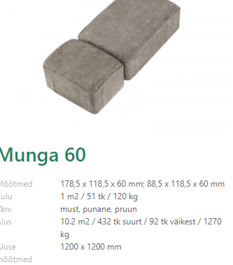 Kõik materjalid teie poolt, kivid, äärekivid, alusmaterjal, vuugiliiv. Meie poolt äärekivi betoon ja töö. |