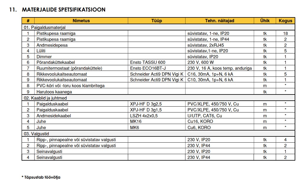 Elektritööd vastavalt projektile (hetkel vastav projekt hankes).