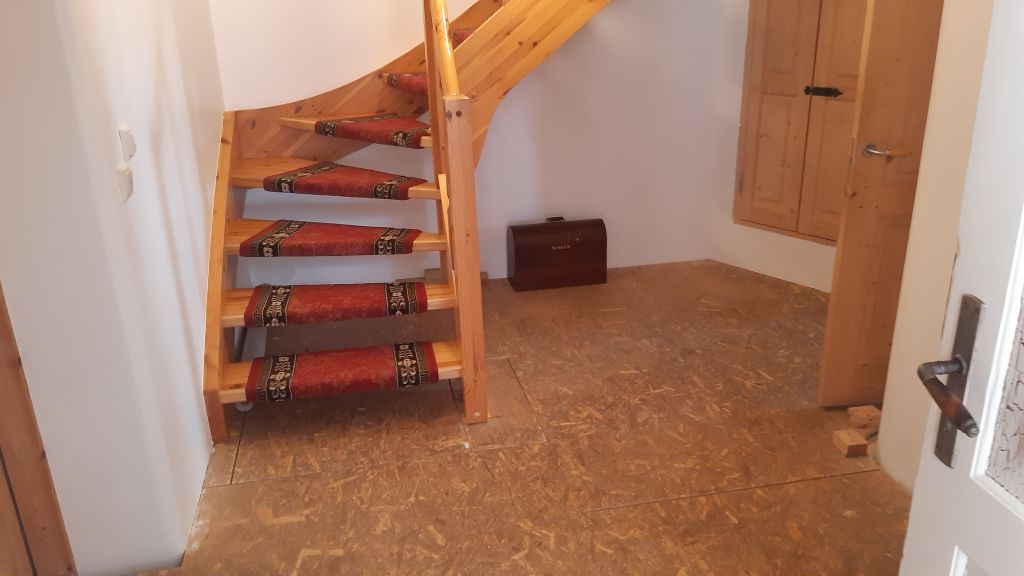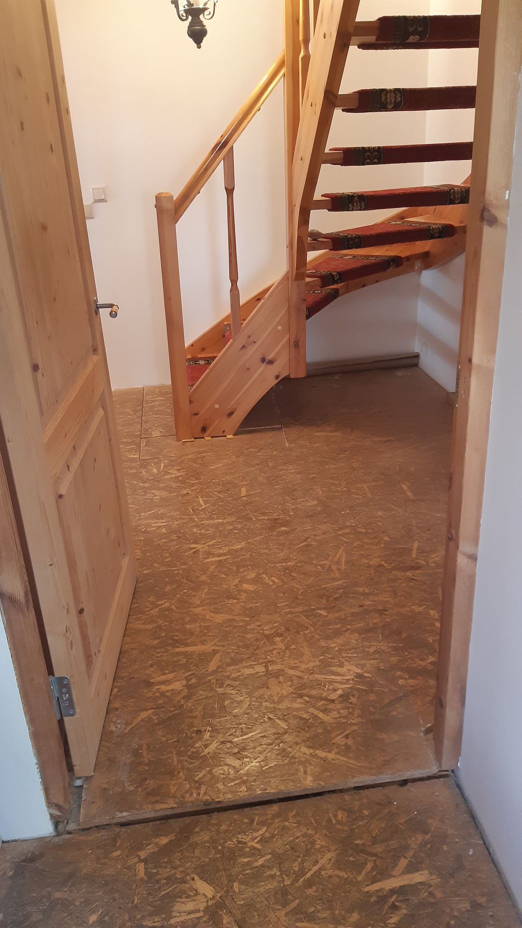 vana OSB plaatide utiliseerimine, põrandate õigesse kõrgusesse ajamine ning laudispõranda paigaldamine.