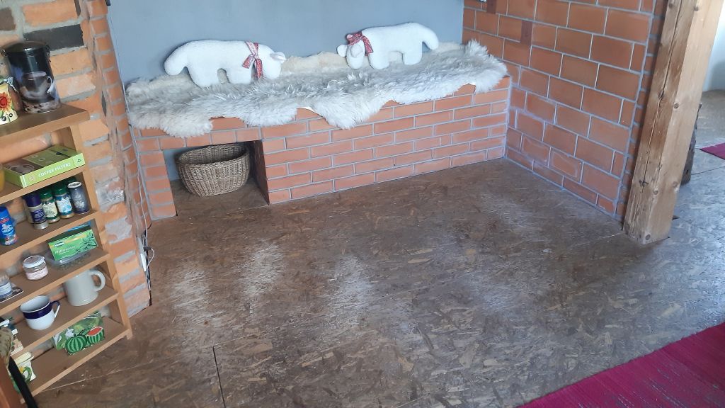 Hetkel maas 16mm paksune OSB (viimane tuleb eemaldada), mis toetub laagidele, laagide vahel EPS soojustus, aluspõrand on betoonist.