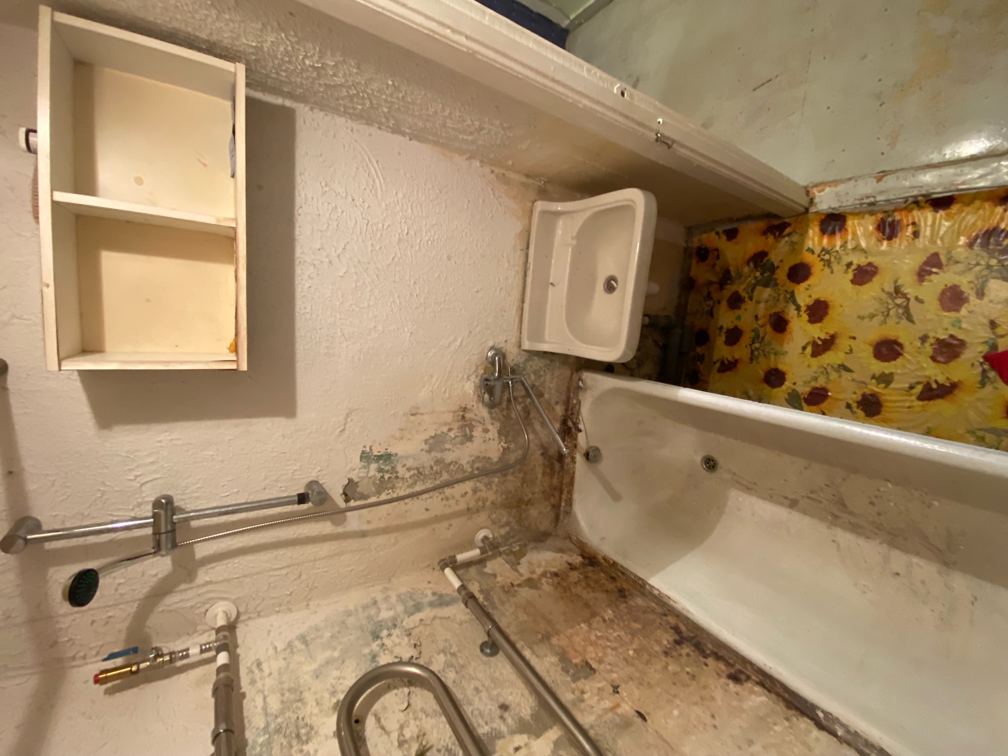 Vannitoa ja WC vahelt seina (2 ca 13 mm-st tsementkiust plaati) eemaldamine. Seinte ja lagede sirgeks tegemine, niiskustõke. Vanni ja valamu taha ning kogu põrandale hüdroisolatsioon. Uus torustik alates veemõõtjast ja kanalisatsiooni püstakust (köök püstaku taga ja püstak avatud WC poti taga). Ventilaatori paigaldus vannituppa. Põranda ja seinte plaatimine. Vanni (või duššinurga) paigaldus koos klaasiga. Vannisegisti paigaldus ja valamukapi paigaldus (koos segistiga) ja peegelkapi paigaldus valamukapi kohale. Wc poti paigaldus. Lisaks ka veemõõtjate vaatlusluuk.