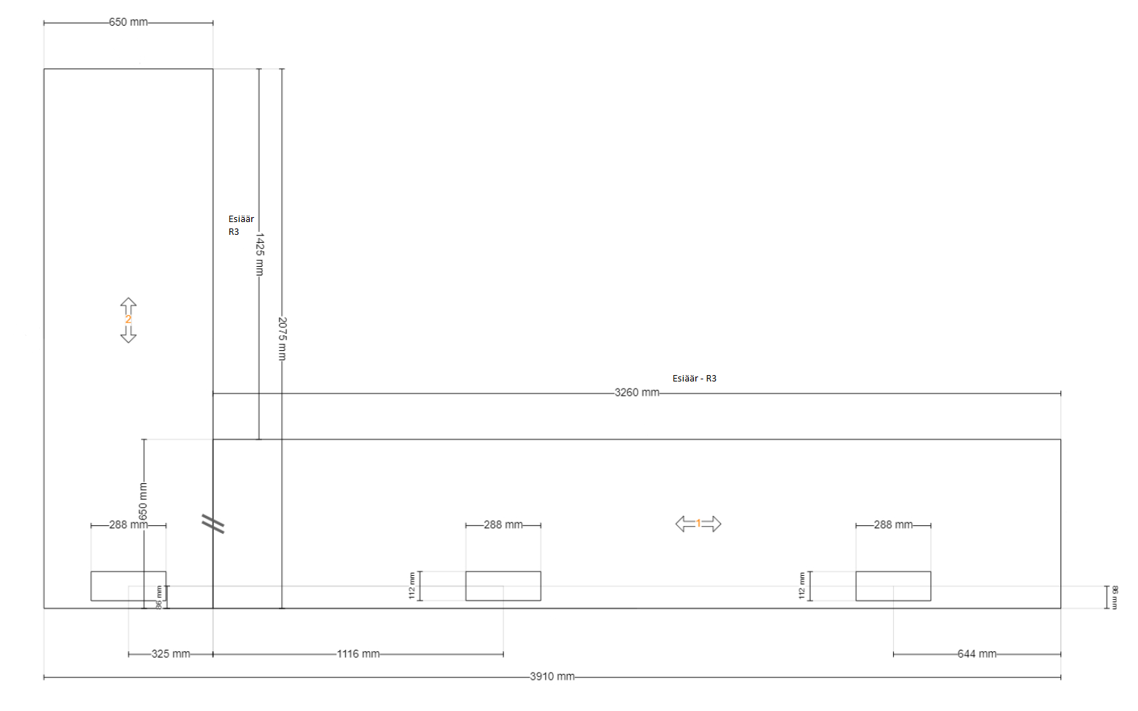 Tamme liimpuidu joonise järgi lõikamine ja lakkimine. Puit peaks jääma naturaalse tooniga peale lakkimist, võiks olla lakitud igast küljest ning esiääred (märgitud joonisel) võiks olla pealtpoolt raadiusega R3.