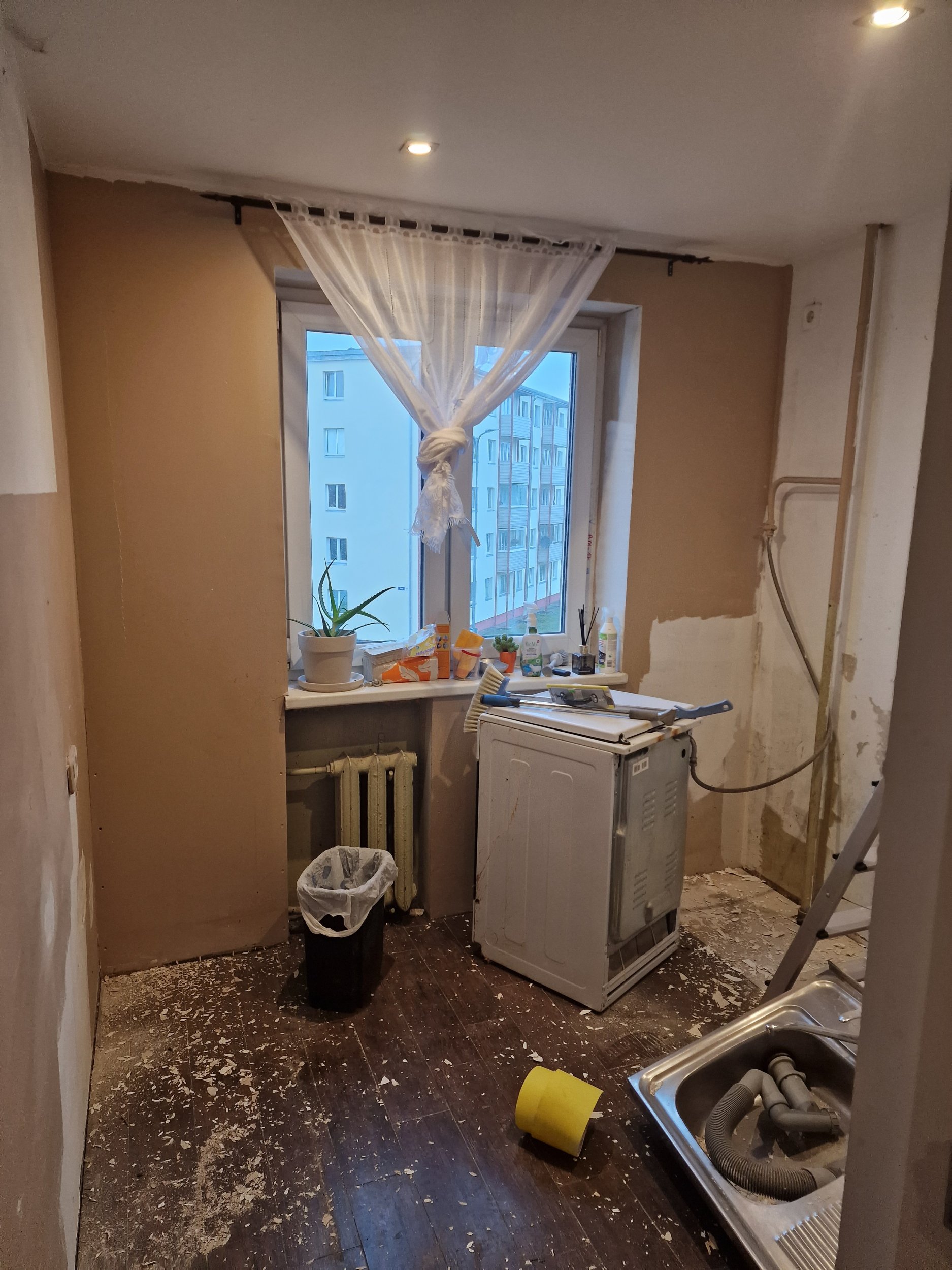 5 ruutmeetrit kööki. Lagi ja põrand on korras. Seinad oleks tarvis pahteldada , lihvida ja värvida. Enamus vahendeid on olemas tööks. Vajadusel saan juurde tuua.