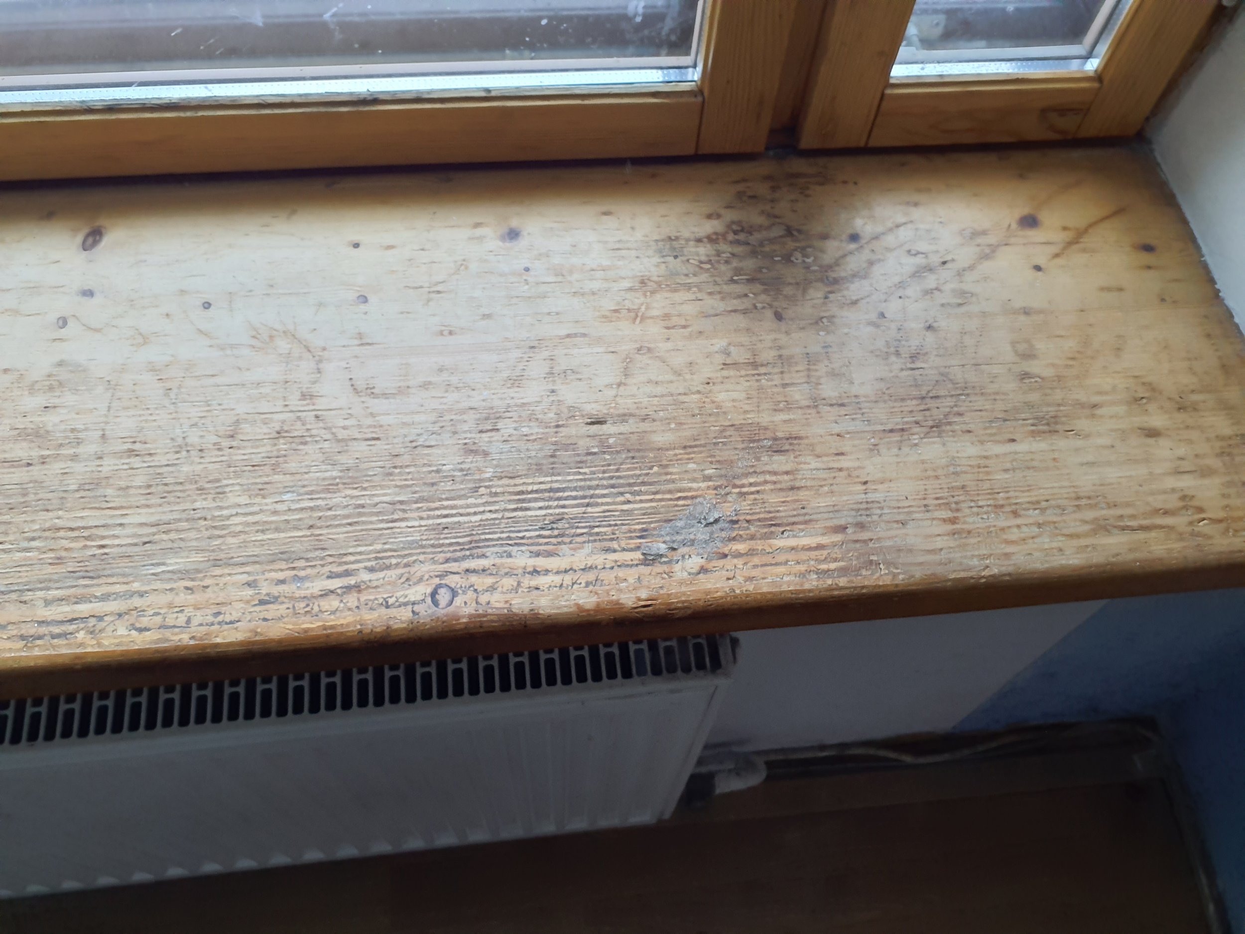 Kahe aknalaua lihvimine ja õlitamine 3,3 jm, laius 0,3 m.