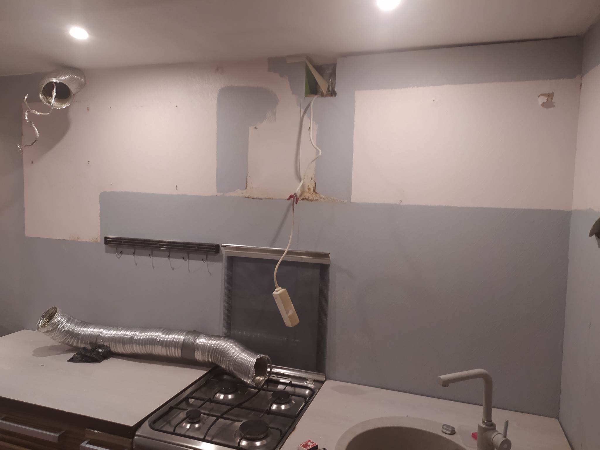 Korteris teha puhtaks üks sein ja lagi, st eemaldada köögi alumiste kappide kohal seina kattev vineer ning köögi ripplagi.