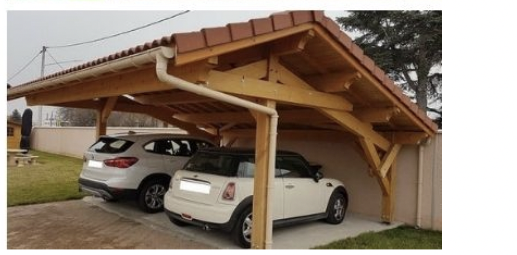 Mõõdud 3,5x5,5x3,5 m. Auto varjualune on puitsõrestikul.