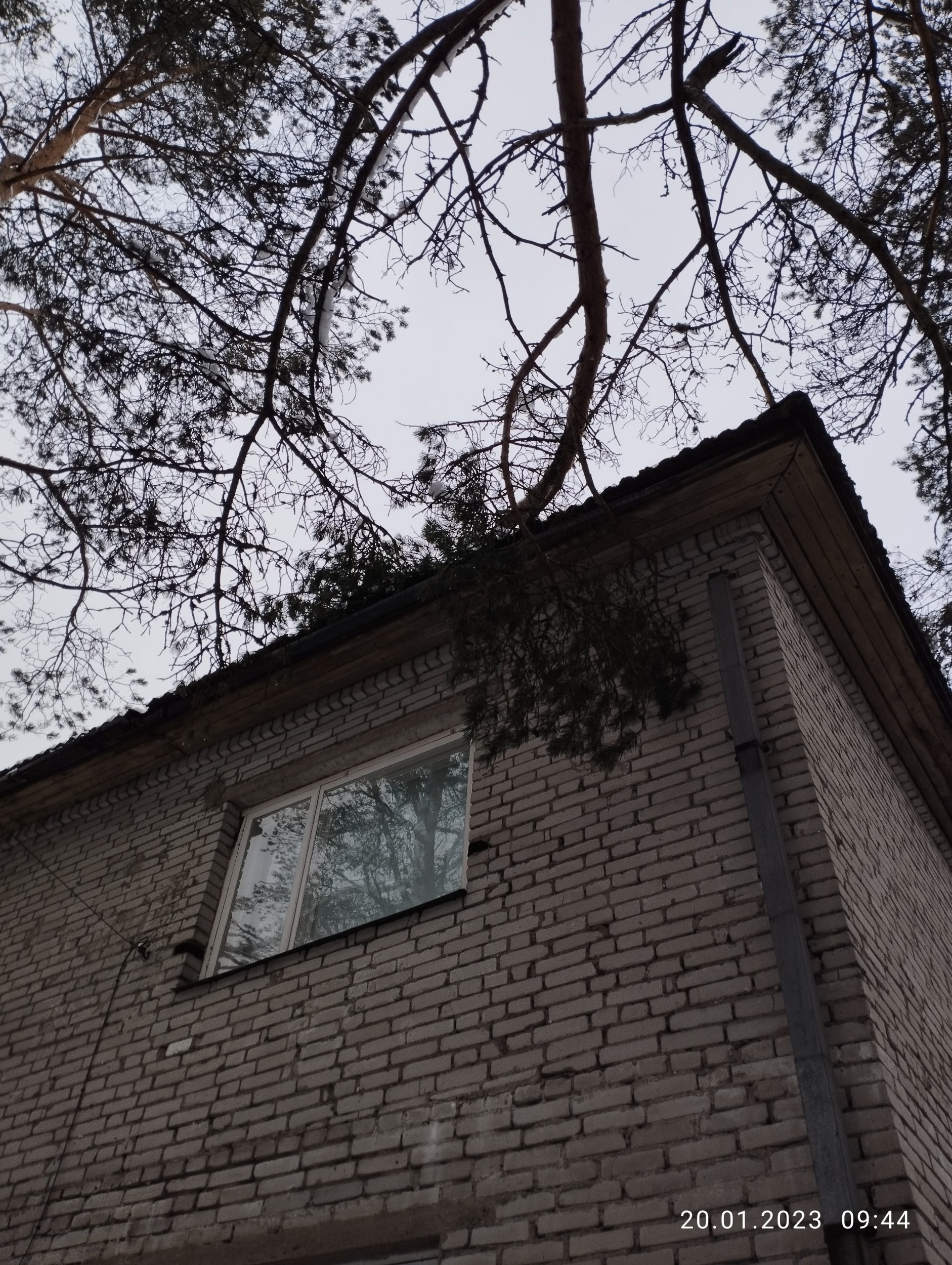 Katusel oleva oksa saagumine ja tüve langetus-ilma tükelduseta ja utiliseerimiseta