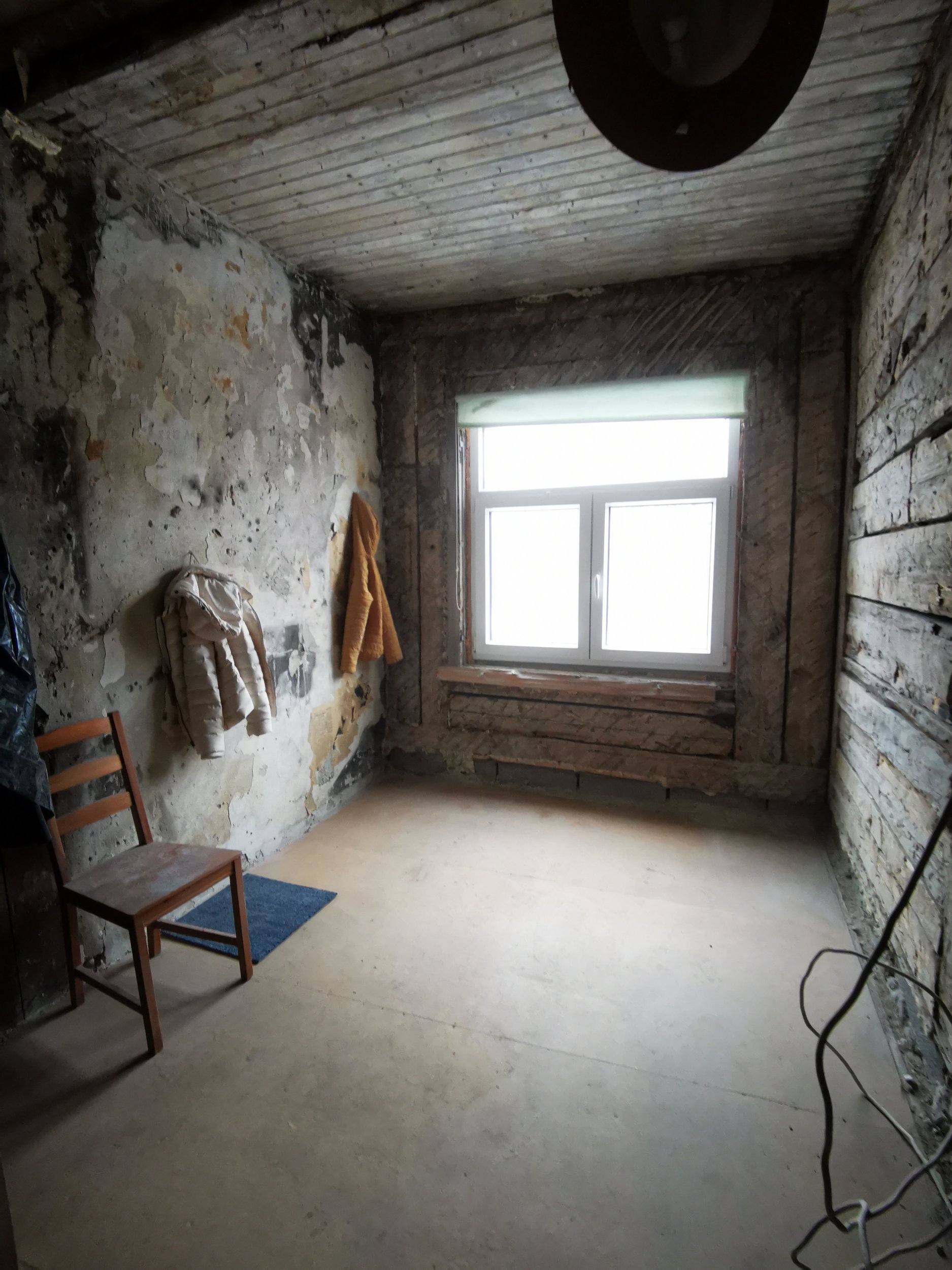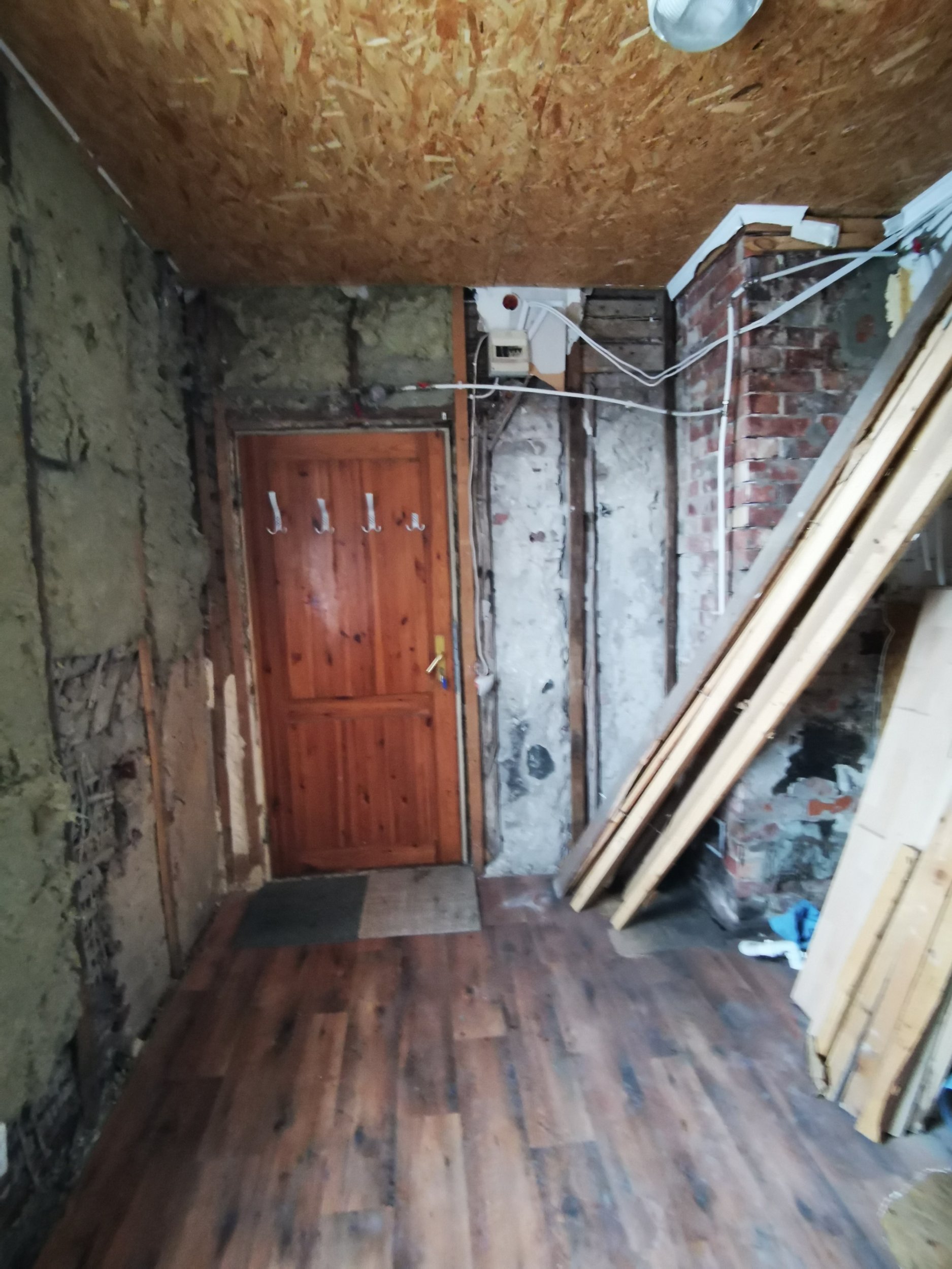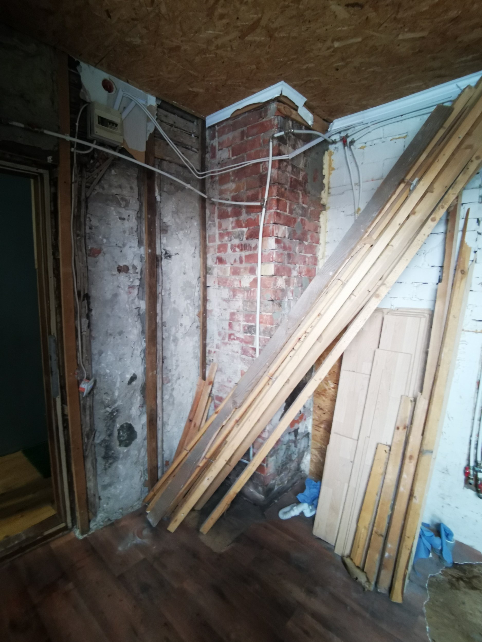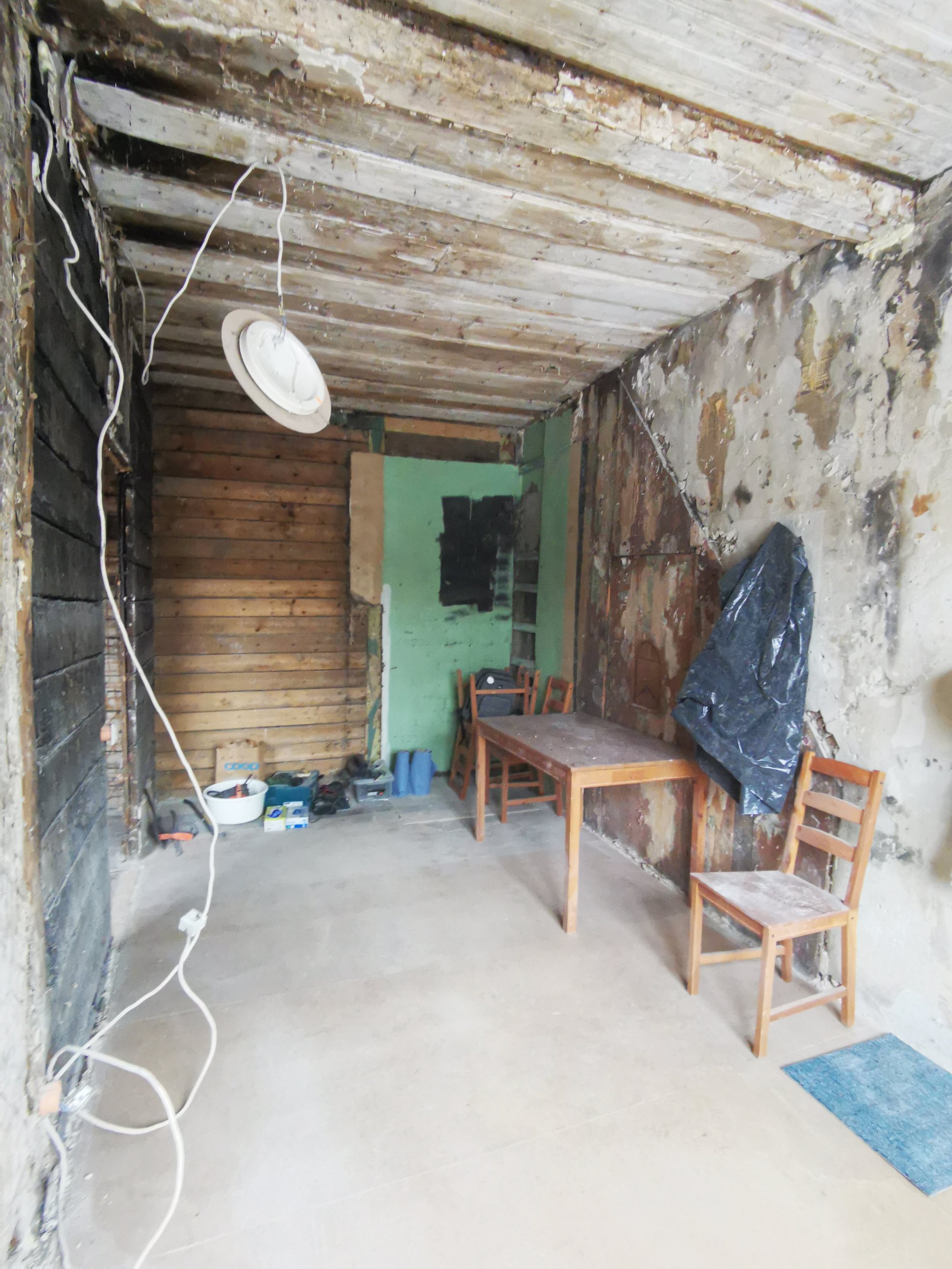Lammutus üks vahesein/põlenud. Soojamüüri lammutus- elutoa-kõõgi alal.