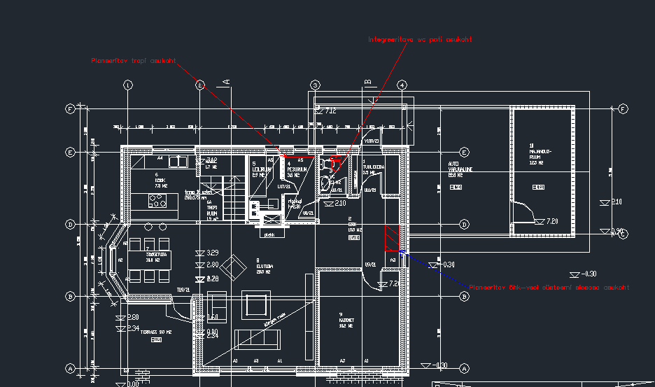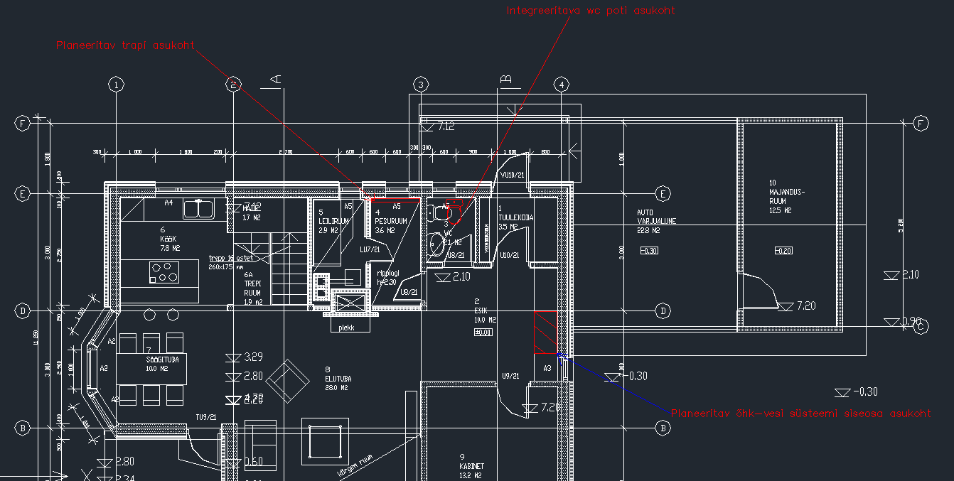 • Põranda äravoolutrapp piklikult seina äärde.