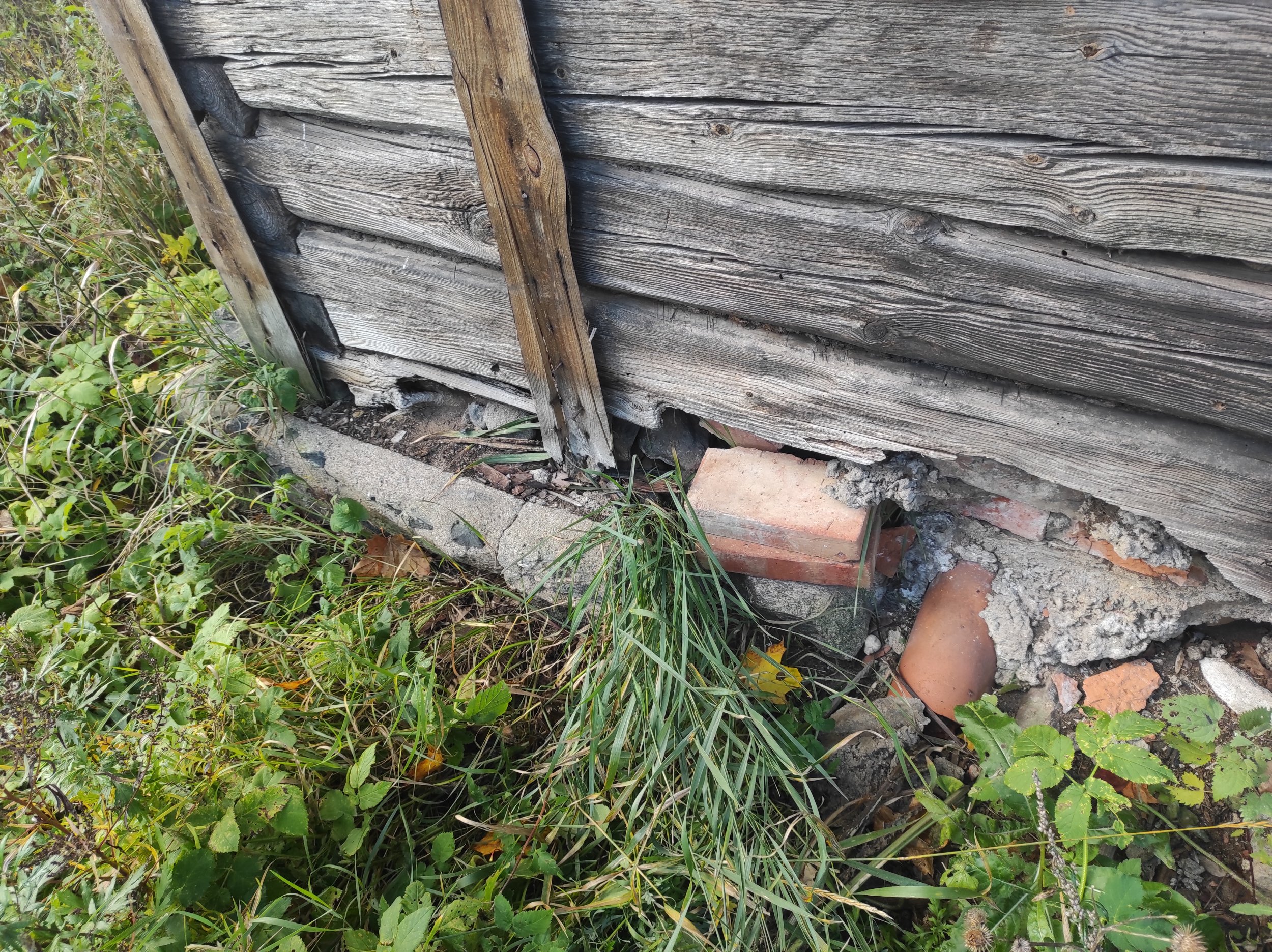 Alumine palgirida on kulunud ja ühes maja nurgas vundamenti pole. Lagunenud ja puuduvas osas valada uus vundament.