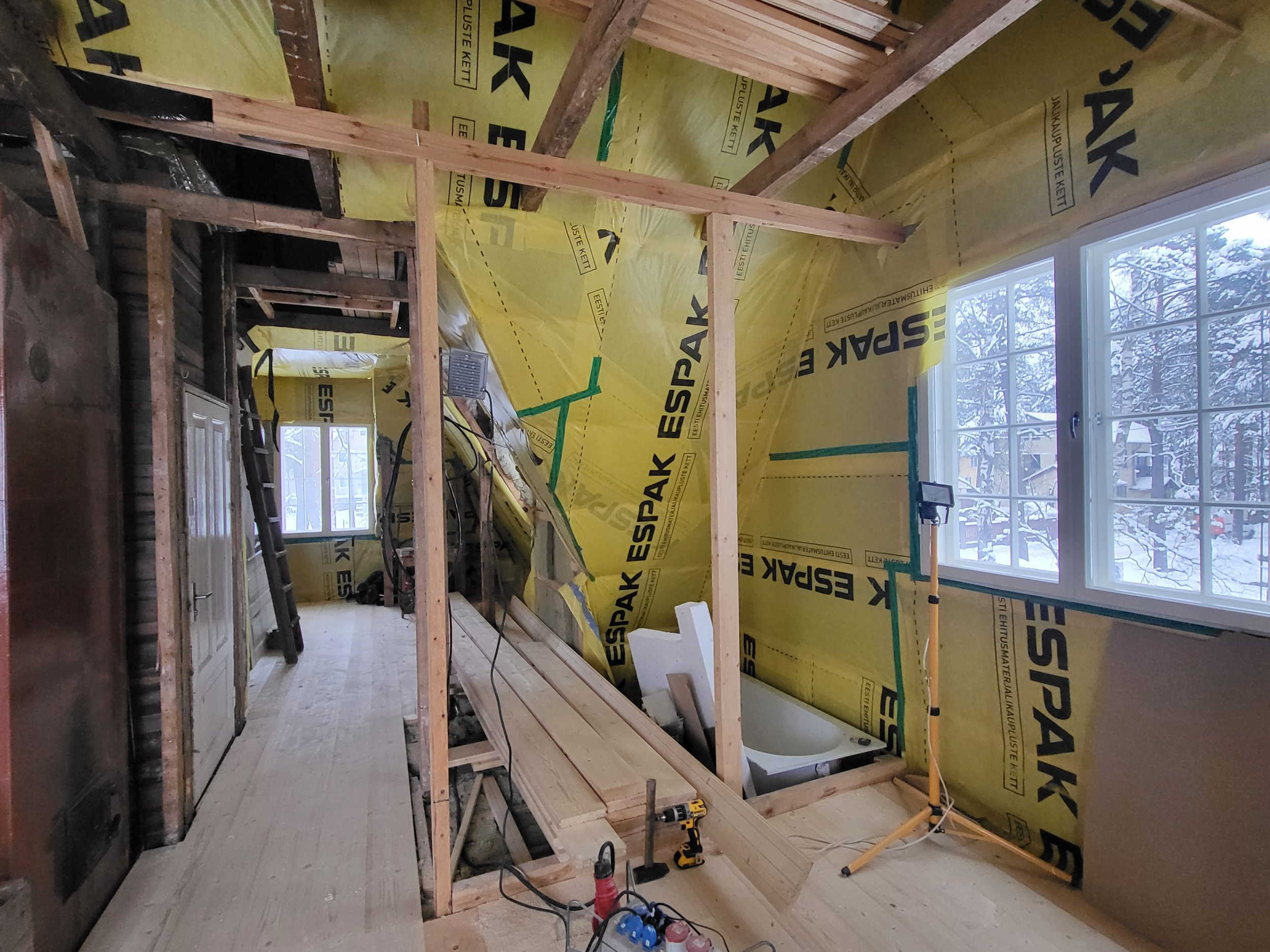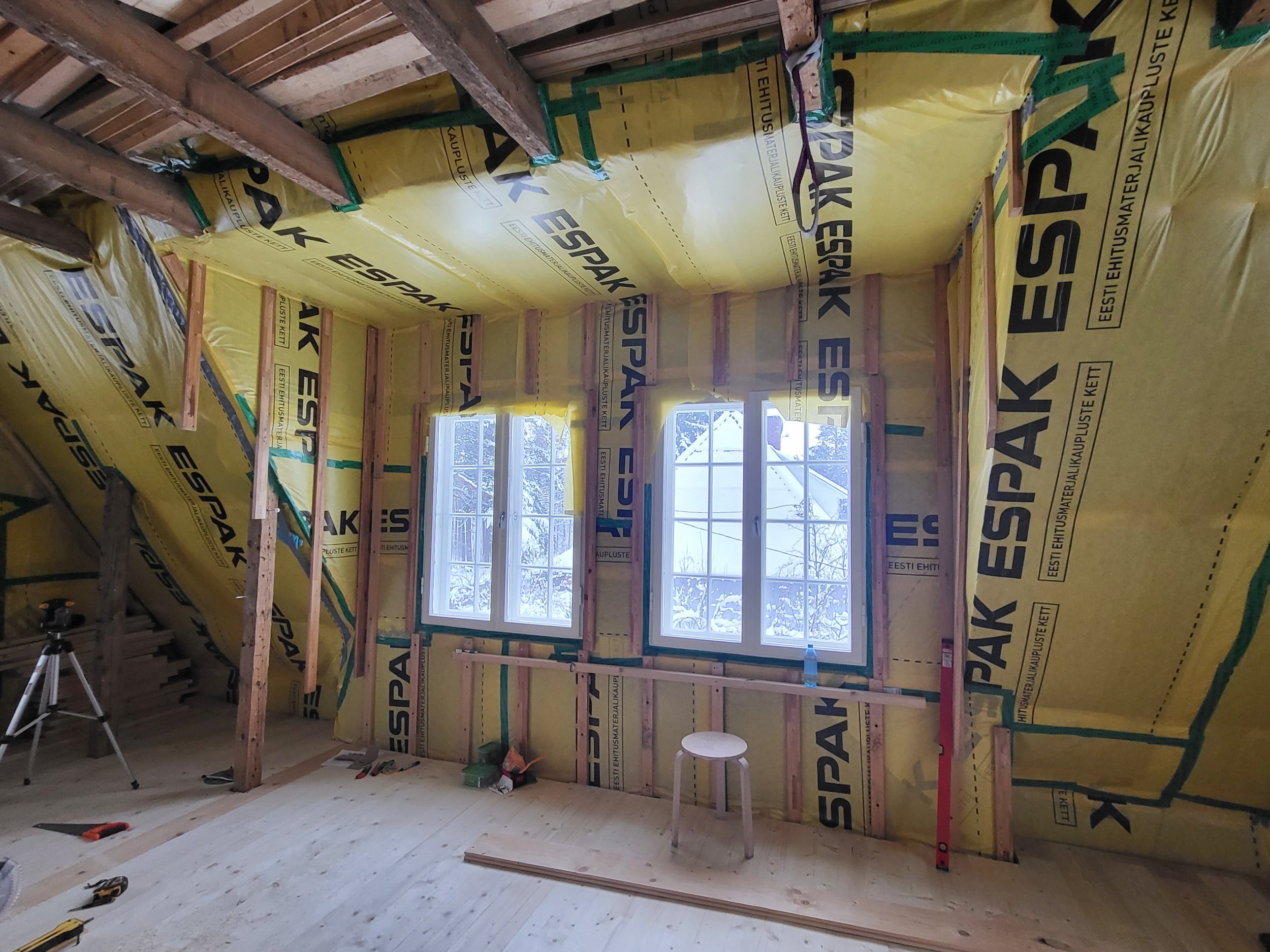 (või õhema - PIR või kingston plaadi paigaldus), aurutõkkepaberi paigaldus.
