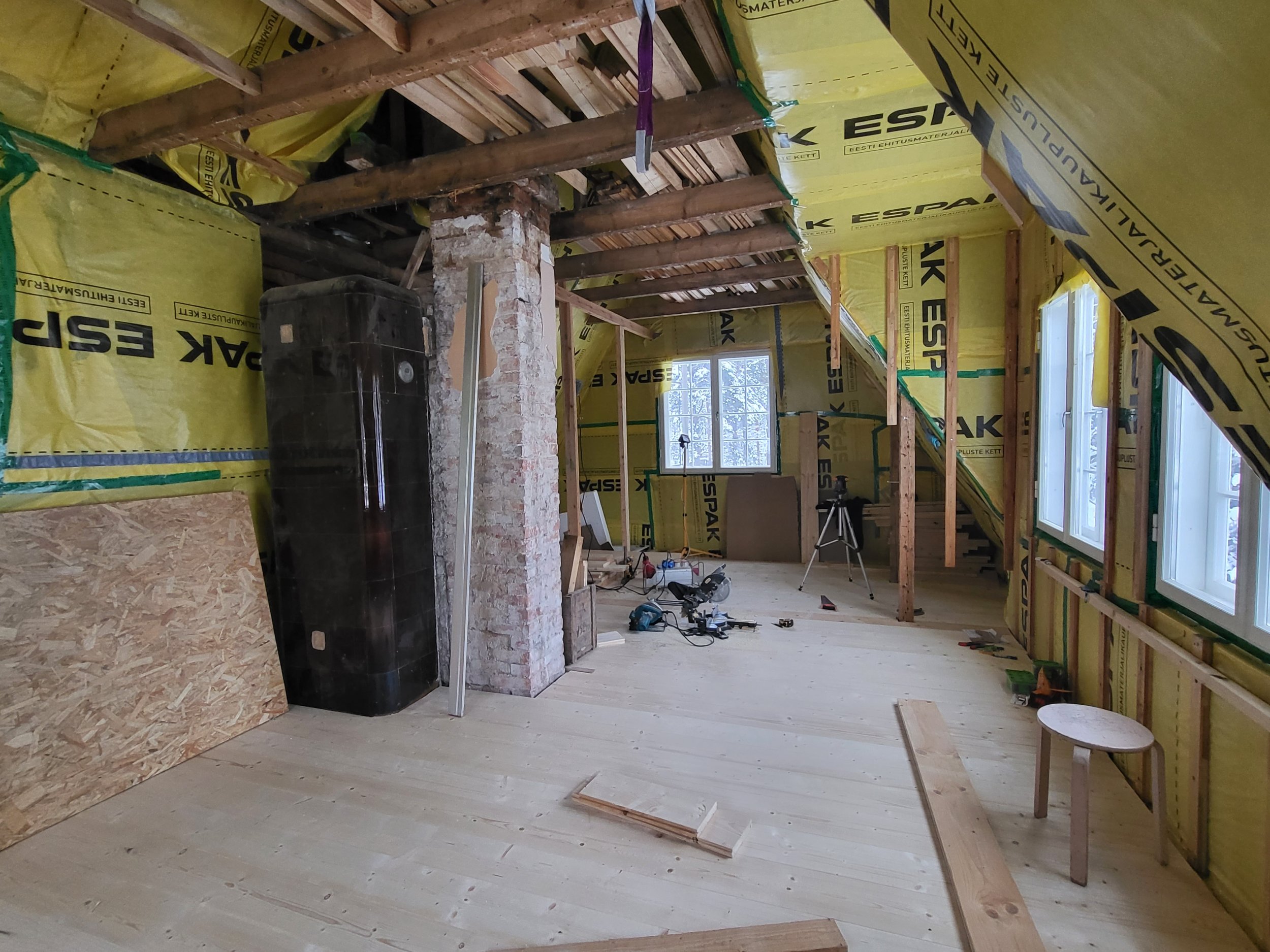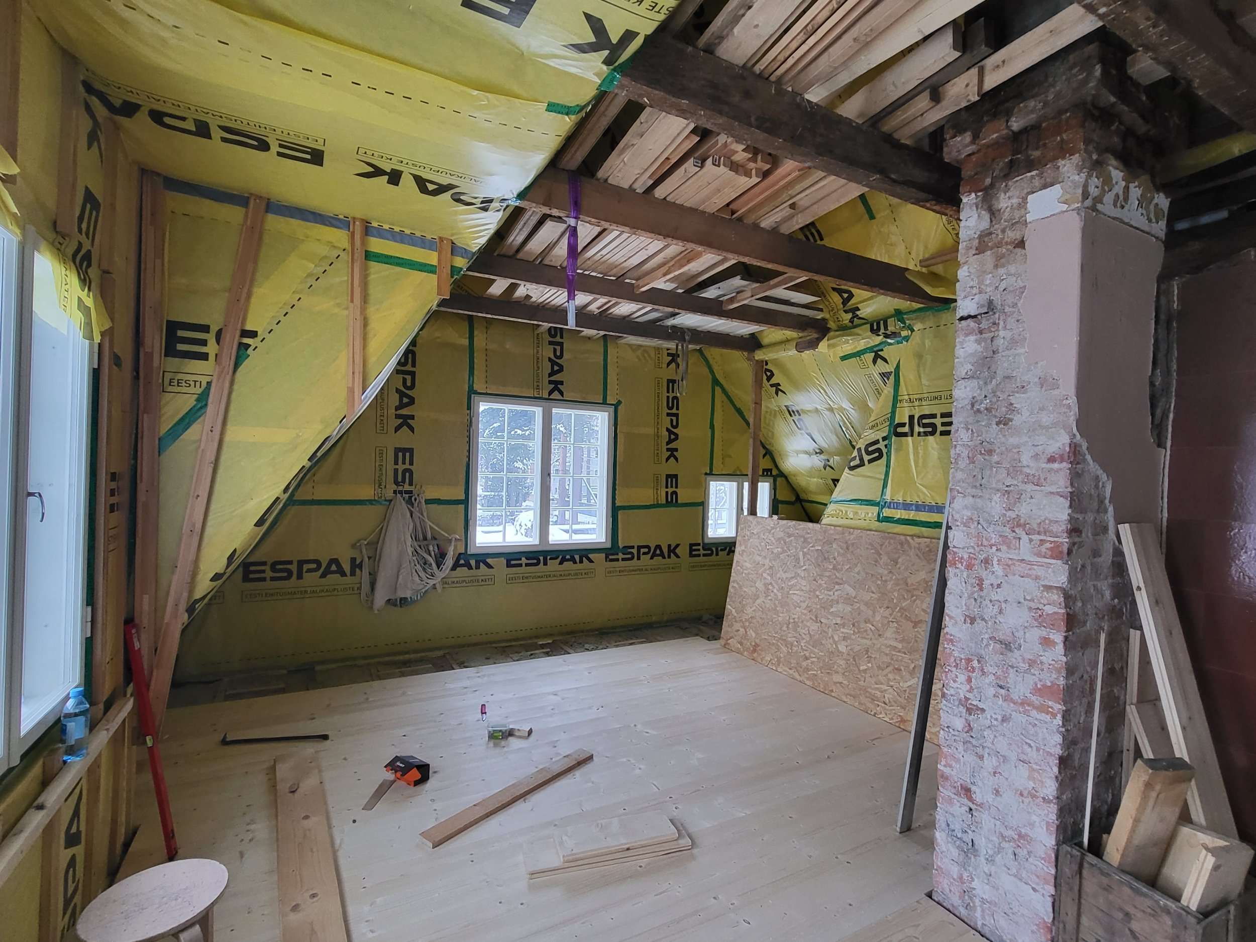 4) Vaheseinte ja lagede ehitus kipsplaadiga (vaheseintesse lisaks OSB).
