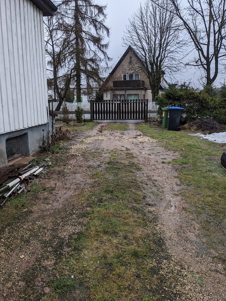 Sissesõidutee ehitus eramu krundile, ala on umbes 40 m2. Tegemist on vana kruusakattega sissesõiduteega, mis sai kanalisatsioonitööde käigus läbi kaevatud. Pinnas on savine. Tee alale jääb kanalisatsioonikaevu luuk.