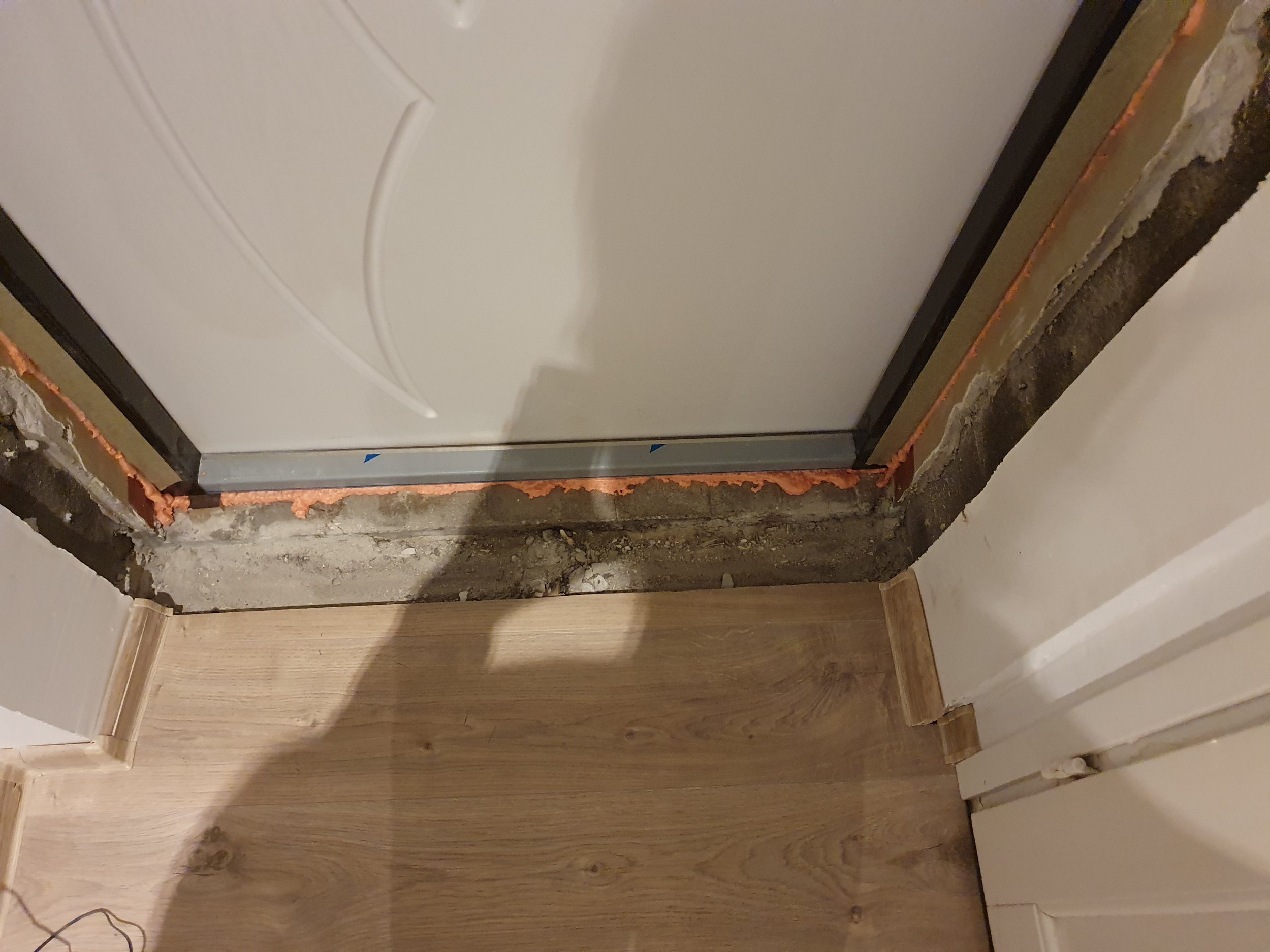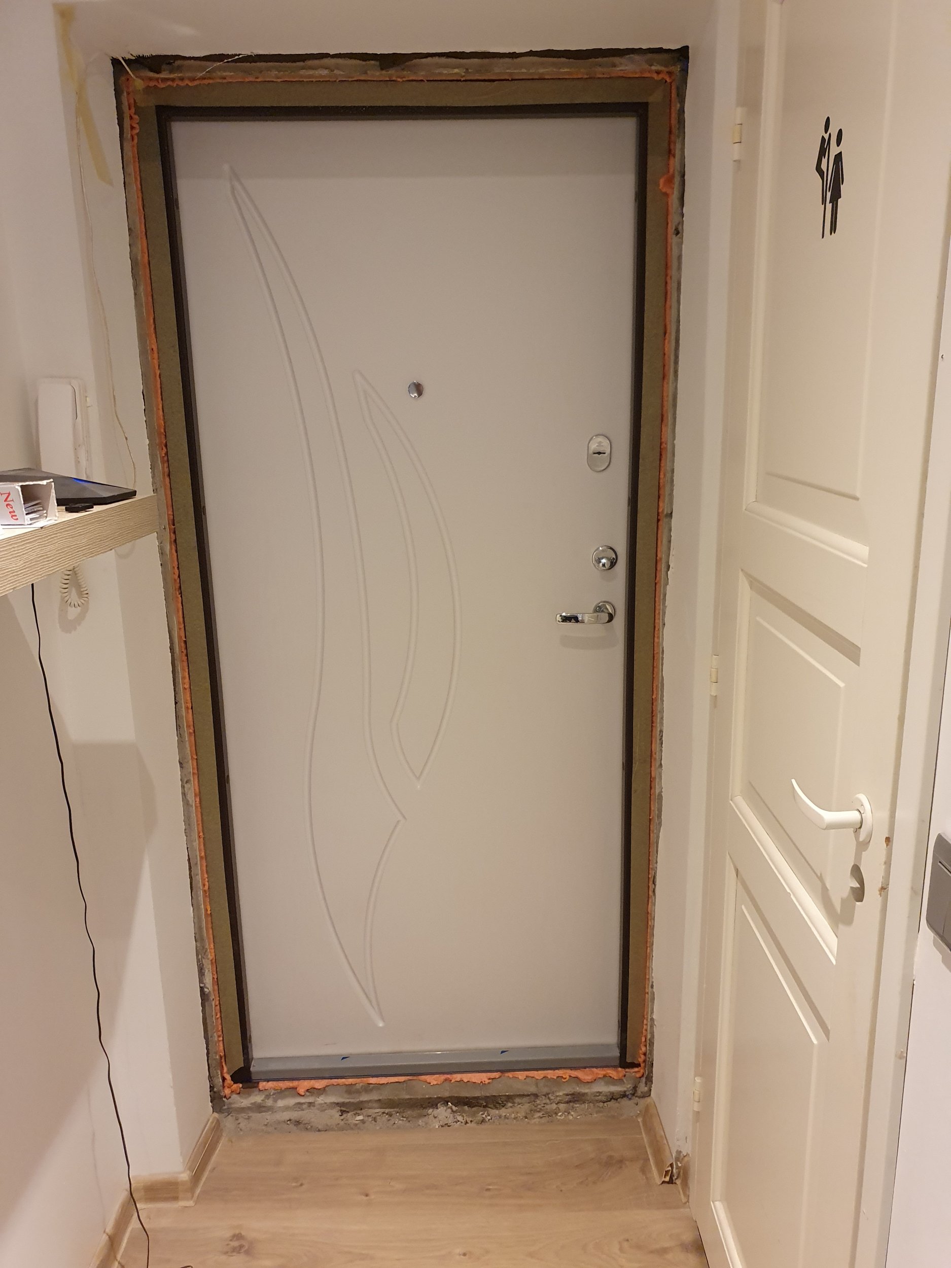 Korrastada ukse vahetusest jäänud vahed. Põrand, seinad ja lagi ühtsustada ümbritsevaga. Põranda jaoks oleks ka üks tükk parketti alles mõõtudega 96 x 16.5 cm, kui sellest peaks piisama, muidu piisab ka põranda vahe tõstmisest samale tasemele.