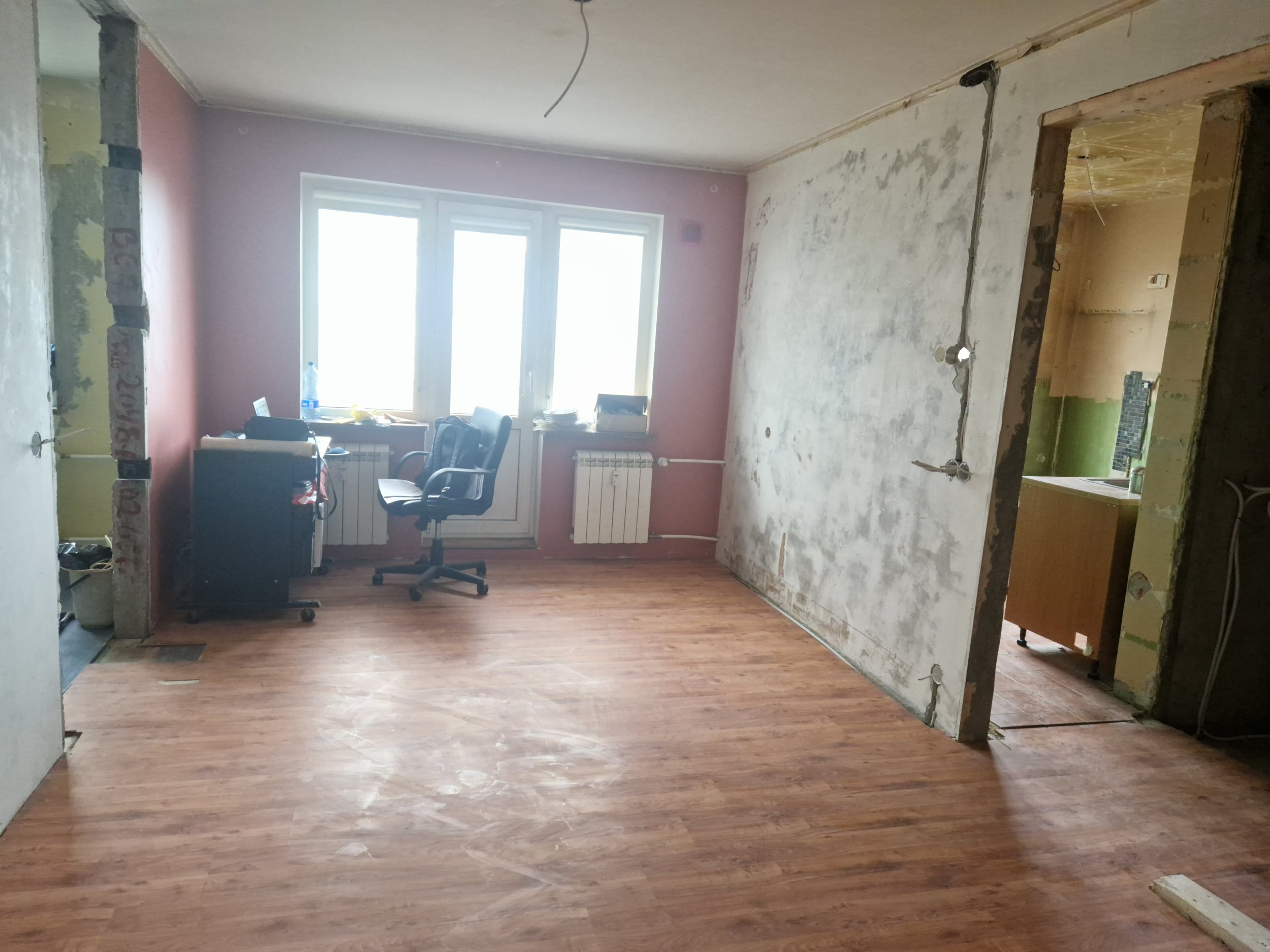 Piltidelt paistab jah, et ka elutuba pahtli alla. Ilmselt tuleb 1-2 kihti pahteldusi, kööki lisaks aluskiht, vajadusel akrüülid ja krunt.
