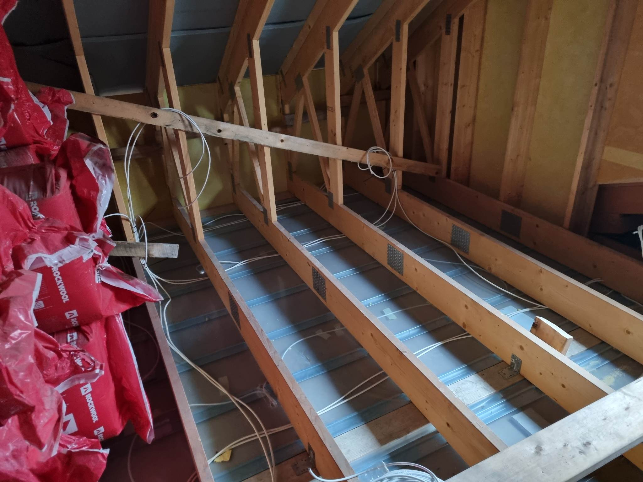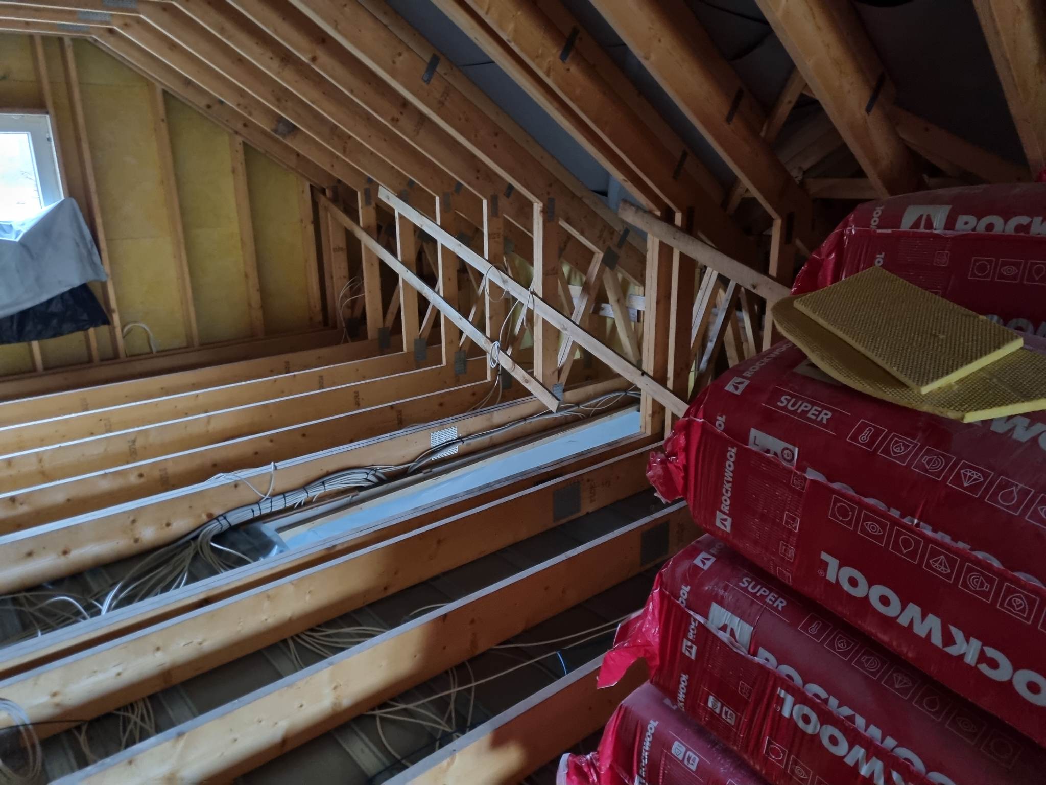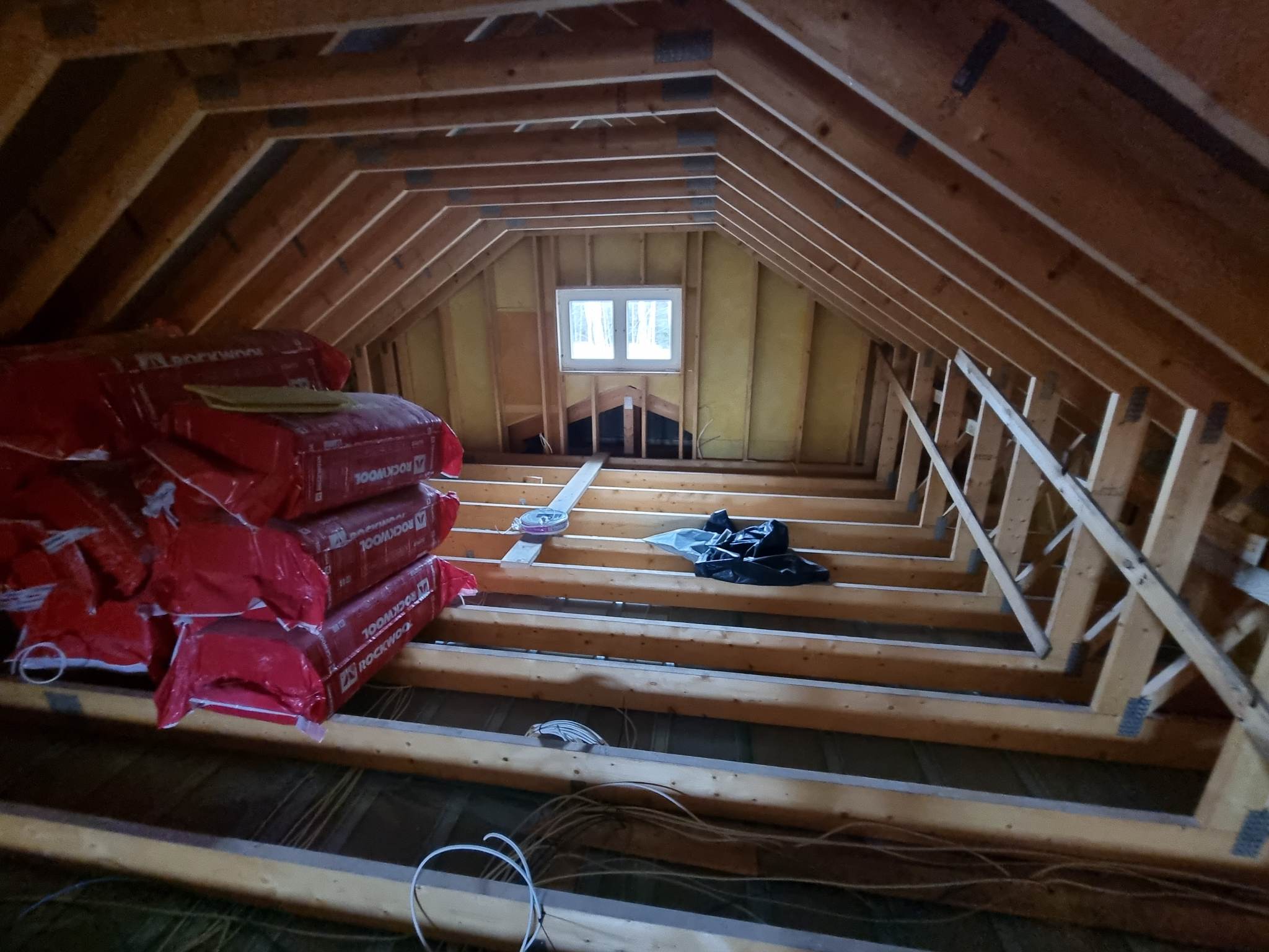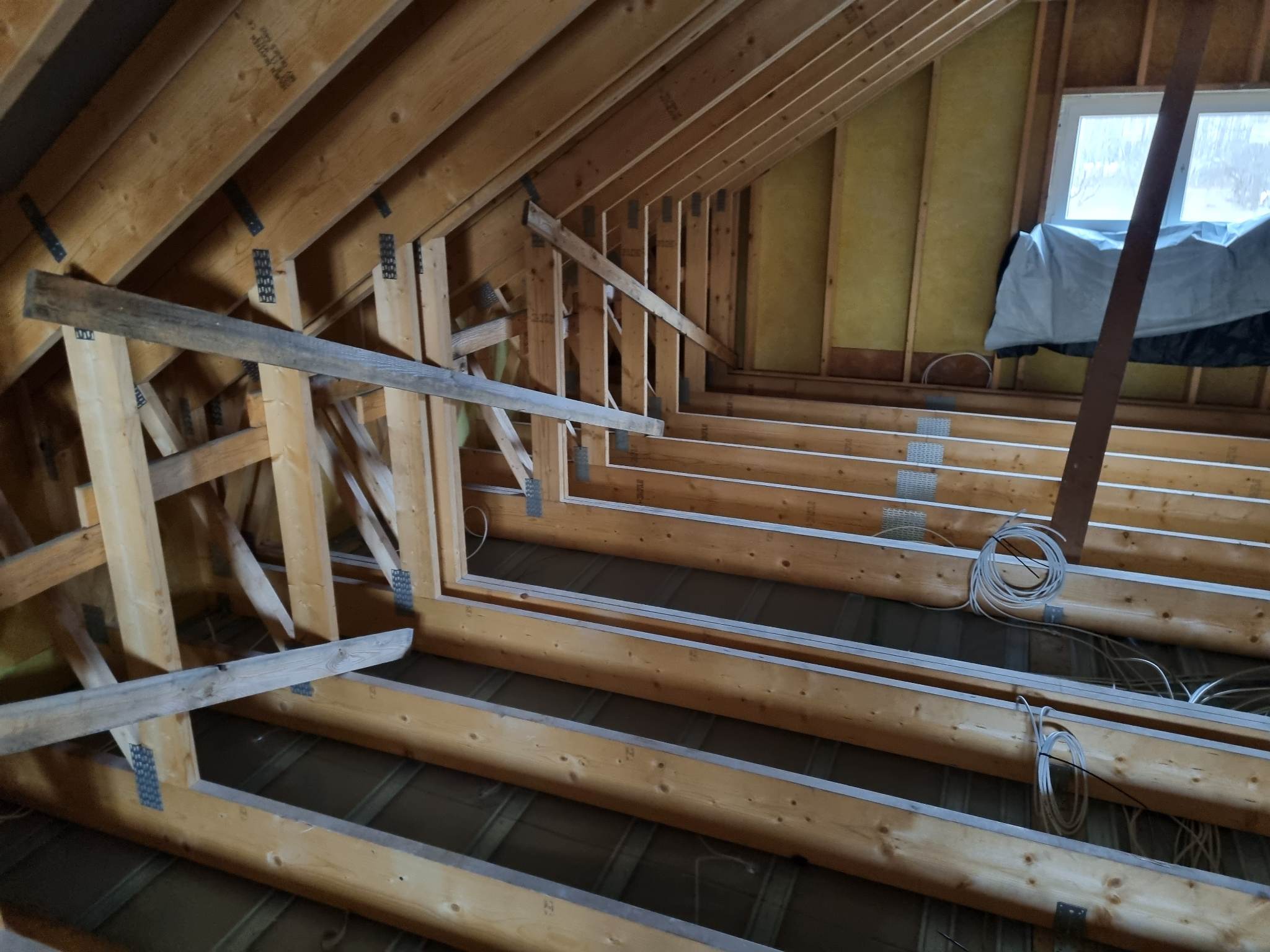 Põrandad, vaheseinad, katuse ja seinte soojustus, heliisolatsioon, kahe akna viimistlus (mõõtmed: 1400x900), kolm siseust ja nende paigaldus. WC ruumi asemel tuleb panipaik. Ruumidesse tulevad radiaatorid (vajalikud küttetorud veetud). Ventilatsioonisüsteem paigaldatud. Katuseaknaid ei tule. Ühte tuba läbib moodulkorsten, mis tuleb samuti viimistleda (korsten paigaldatakse märtsis).