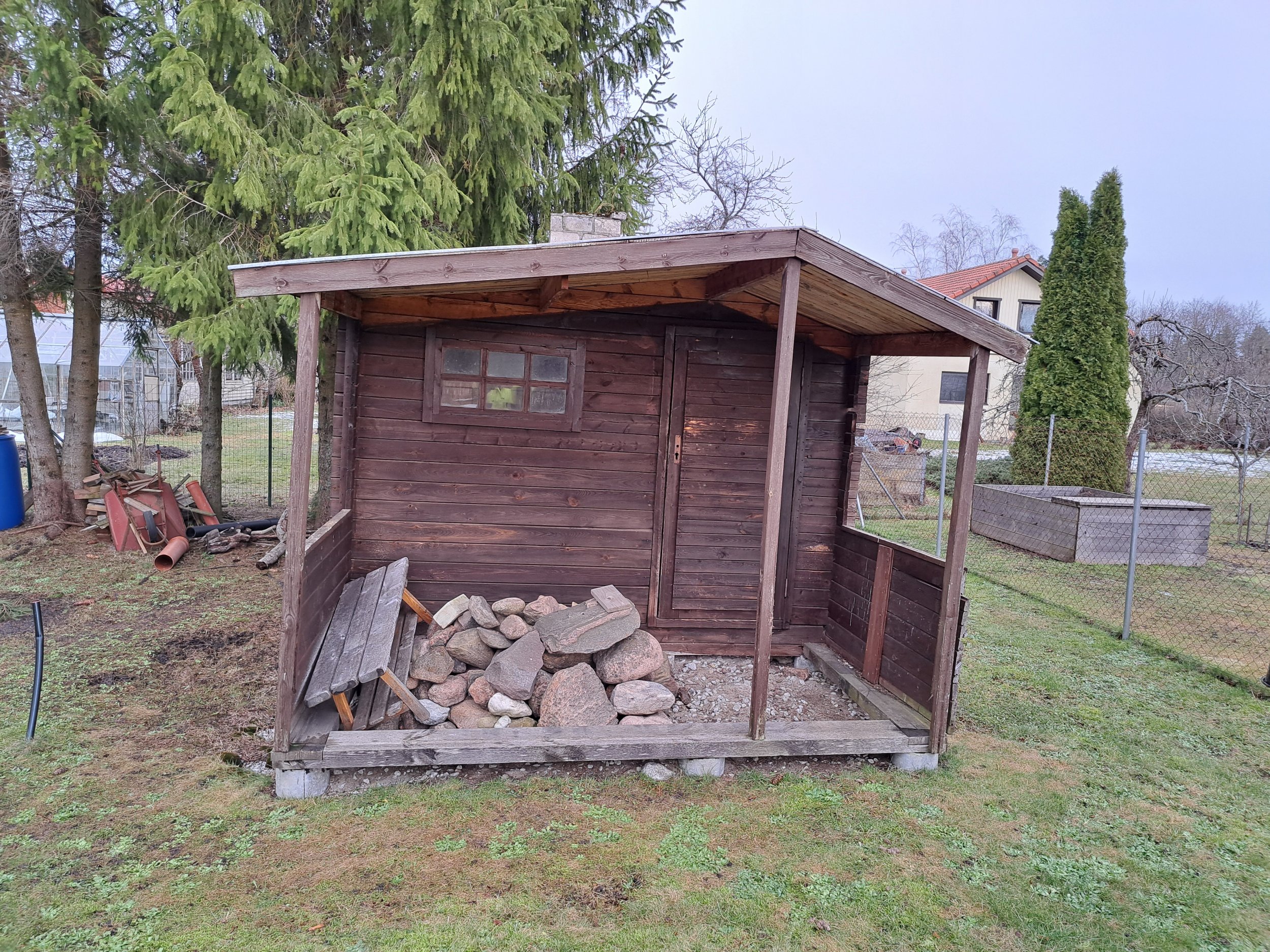 Sauna demonteerimine. Tekkinud prügi utiliseerimine. Lõpptulemusena puhas plats. |