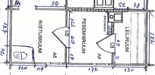 Sauna, pesemisruumi, riietusruumi ja WC renoveerimine.