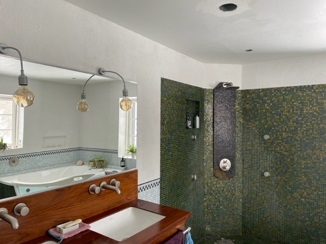 Vann jääb see, mis on. Valamud ning valamusegistid jäävad samad. Vannisegisti jääb sama. WC pott ning dušisegisti asendatakse. WC poti tagune sein viimistletakse hiljem lahtse riiuliga, mille viimistluseks on vineer, mis katab kogu loputuskasti osa (loputuskasti tagune viimistlus on tehtud sinnaehitatud mööbli poolt). Vineer on kasutusel vanniesise paneelina (ei vaja ehituslikku viimislust).