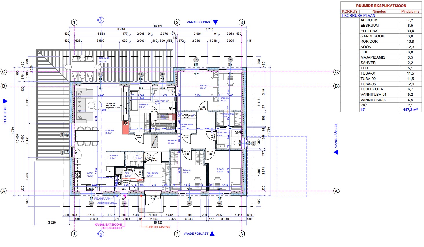 Vajalik koostada projektid ühekordse eramaja veevarustusele, kanalisatsioonile ja vesipõrandaküttele. Maja pindala 147,3 m2. Kütteallikaks maasoojuspump.