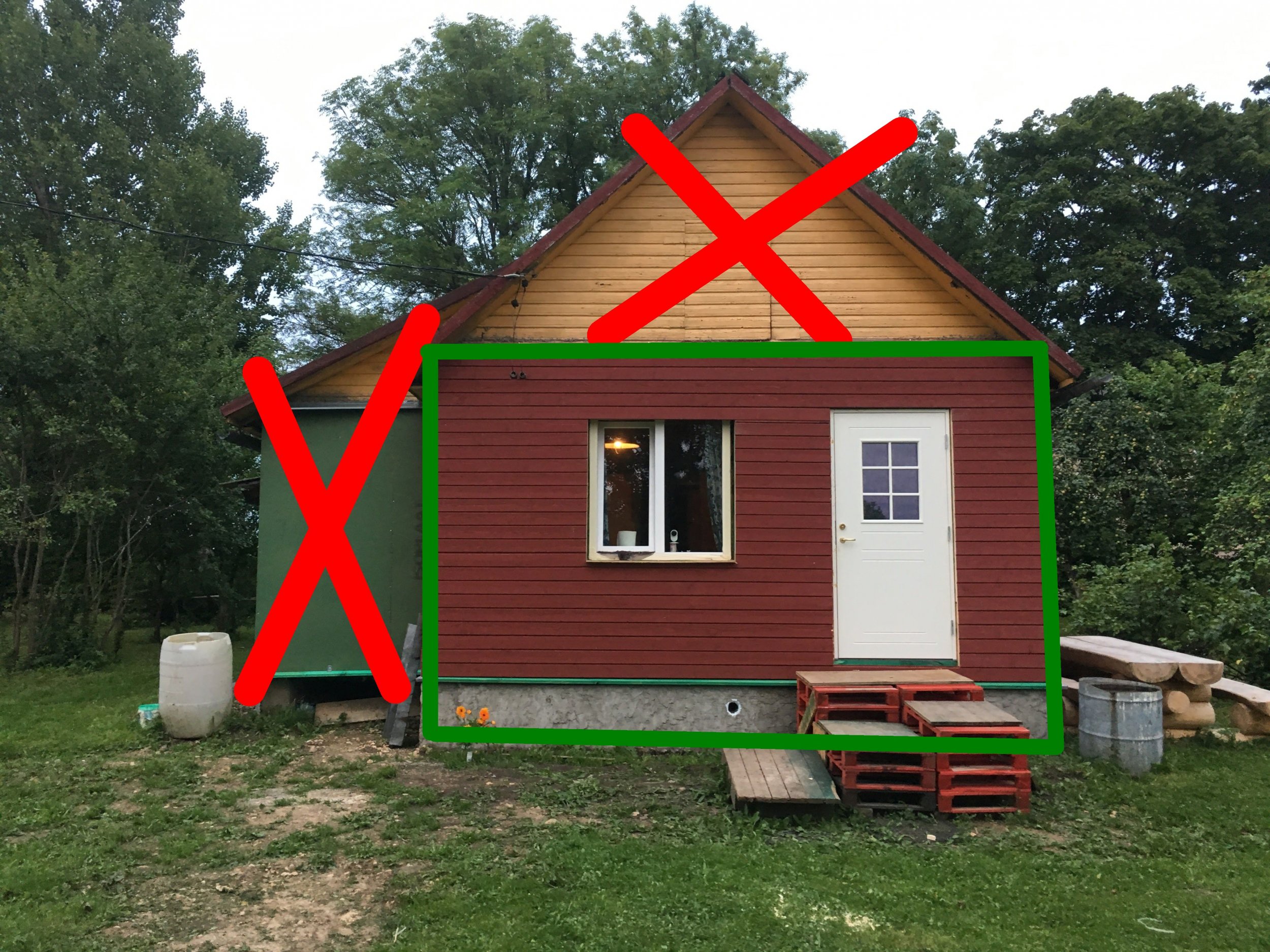 Olemasolevast hoonest I korrus 30m2 jääb alles, laieneb küljele 23m2 (esik+vannituba) ja II korruse katusealune 47m2